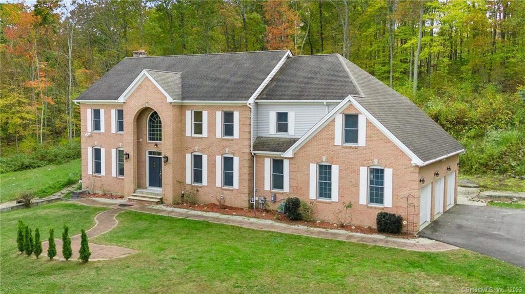 Welcome to this magnificent and spacious colonial conveniently located just 15-20 minutes from UCONN and 20-25 minutes from Hartford. Breathtaking mountain views on a beautifully landscaped 3.8-acre private lot. 6 bedrooms, 4.5 bathrooms, a total of 4,483 square feet of living space, plus an additional 1,259 square feet in the finished lower level, this home is a true gem. Town-approved walkout apartment with a separate entry that includes a kitchen, bathroom, living room, and 2 bedrooms, making it an ideal space for guests or in-laws. The first floor has an updated kitchen with granite countertops, stainless steel appliances, a 6-burner gas cooktop, center island, custom cabinets, and stylish tile floor and new backsplash. The spacious family room is perfect for entertaining and features a wood-burning fireplace. Formal dining room, a living room, a convenient half bath and a laundry room complete the first floor. On the second floor, there are four bedrooms, including a gracious master suite with an exquisite spa-like bathroom and views of the surrounding forest. The large finished room over the 3-car garage provides versatility and can be used as a playroom, office, or an extra guest suite. The third floor offers a massive finished area with four skylights, allowing for an array of potential uses. Lower level hosts a fitness center, ballet bar, and sliding mirror closets with storage. Solar panels are OWNED. Monthly payment is only $239.97 to Sunnova.