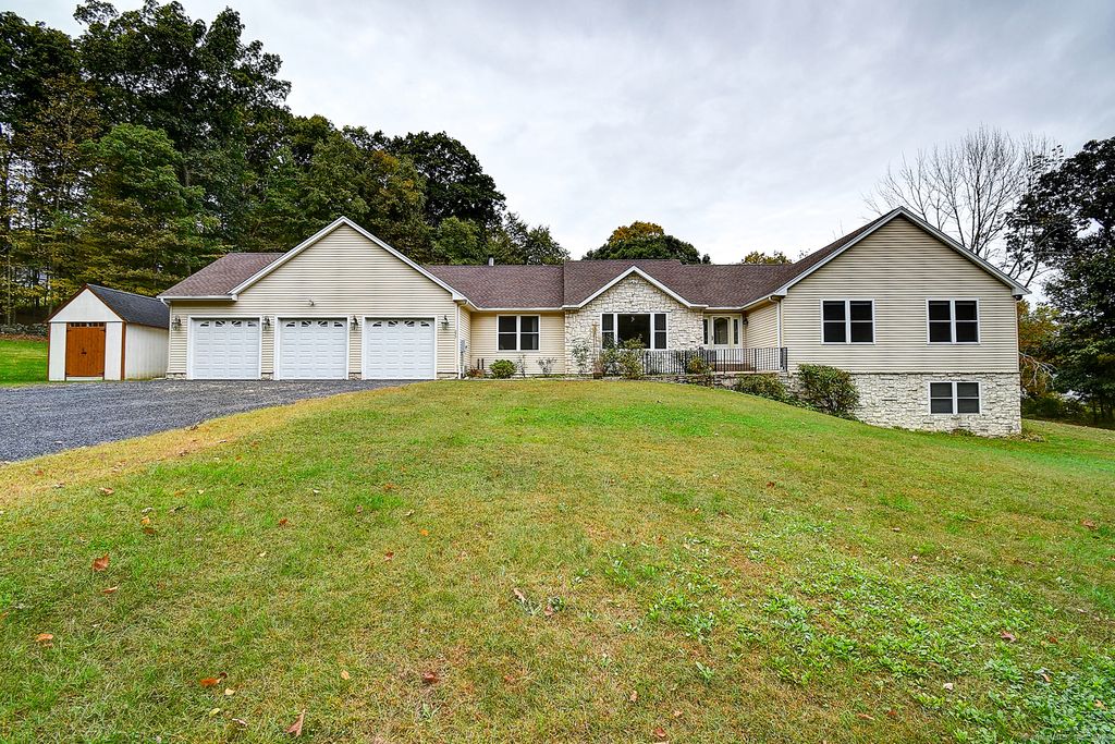 Vacation/Staycation 12 Months a Year!!! Elegant Custom-Built Ranch Featuring a Fabulous Indoor Pool with New Liner & Water Slide!!! Imagine Entertaining Guests, Hosting Parties & Swimming Even During the Freezing Cold Winter!!! The Impressive Vaulted Ceiling is Built with Select Western Red Cedar Tongue and Groove Woodwork Throughout the Pool Area. So There is NO NEED to go to the GYM!!! The Private Pool is Attached to the Home Behind the Garage so There is NO Chlorine Smell or Humidity Within the Home!!! You Can Just Enjoy Your "Vacation Resort" Year-Round!!! This Open Concept Floor Plan Boasts an Updated Gourmet Kitchen with Gorgeous Granite Counters, Stainless Steel Appliances, Newer Double Oven & a Granite Center Island with a Six-burner Gas Cook Top!!! There is Ton of Cabinet Space Including a Pantry & New Wine Cooler!!! There are New Hickory Wood Floors & 4 Foot Hallways Throughout!!! The Spacious Primary Bedroom Suite has Beautiful Views, a Full Bath Complete w/Jacuzzi Tub & Walk-in Closet!!! There Are Two Other Large Bedrooms Plus an Additional Room that Can Be Used for a Dedicated Home Office or Dining Room!!! This Amazing Maintenance Free Vinyl Sided & Stone Home Sits on a Spectacular 1.45 Acre Lot Plus Includes a Three Car Garage!!!! It is Everyone's Dream Home!!! Absolutely Pristine!!!