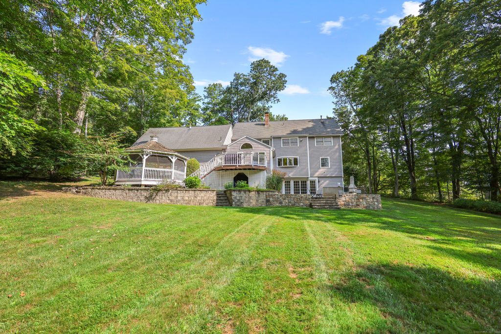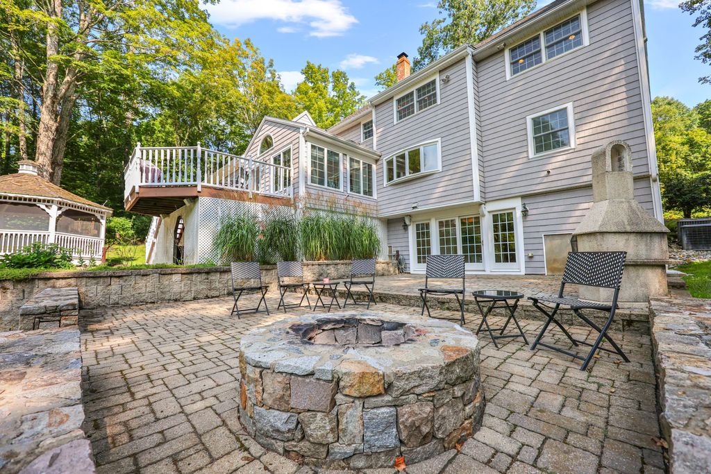 Welcome to this exceptional "Country Home," where timeless charm meets modern improvements on a stunning private lot. The approach sets the tone with a cobblestone entry, paver driveway, and impressive stone walls that frame the stately exterior with curb appeal that will impress. The home offers over 3700sf on the main and upper level; the extra sf is noted as finished area over garage by former owner. Inside, generous living spaces include a stunning family room, flows into a gourmet kitchen, office,full bath and 1 bedroom on 1st floor and expansive flowing rooms on 2nd floor, a 1,500-bottle temperature-controlled wine cellar, inviting bar, and seamless flow to the outdoors-this home was made for entertaining. Step outside to a sprawling deck overlooking a wide-open yard, gazebo, and firepit, with a unique cleared wooded area perfect for gatherings or quiet retreats. Recent upgrades include extensive landscaping and stonework, fresh interior and exterior painting, plumbing and lighting enhancements, and a newer heating and furnace system-providing peace of mind and pride of ownership. With 3 garage bays, natural gas heat, and thoughtful touches throughout, this property is as functional as it is beautiful.