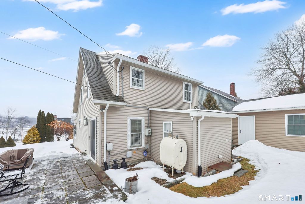 Nothing to do but move in and unpack! This utterly charming Cape, nestled near quiet Lake Terramuggus, is ready to welcome its next lucky owner. Meticulously renovated from top to bottom, this home exudes timeless charm coupled with today's modern amenities. Step inside and be greeted by the herringbone tile entryway and large windows that flood the space with natural light, offering picturesque views of the front yard and a glimpse of the tranquil lake beyond. Cozy up in the living room around a fireplace framed by custom built-ins, or unleash your inner chef in the kitchen featuring white cabinetry, stainless steel appliances, granite countertops, and a spacious breakfast bar perfect for casual dining. A beautifully renovated bathroom with a walk-in shower, along with a practical laundry/utility room, completes the main level. Upstairs, the primary bedroom boasts a sliding door leading out to a private upper deck-just imagine sipping morning coffee while taking in the lake views! A second bedroom offers ample closet space for all your needs. Outside, a charming stone patio with privacy fencing invites you to entertain in style or simply relax as the seasons change. The detached garage is conveniently located just steps from the house. As part of the Hall Park Association, you'll have access to a private beach-an ideal retreat for sun-soaked afternoons. Don't let this gem slip away!