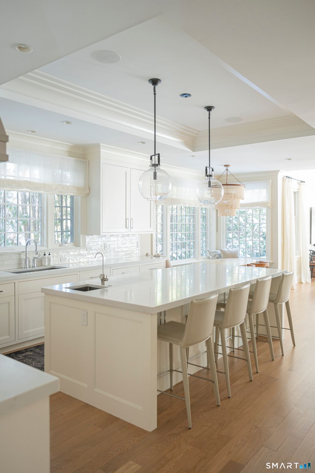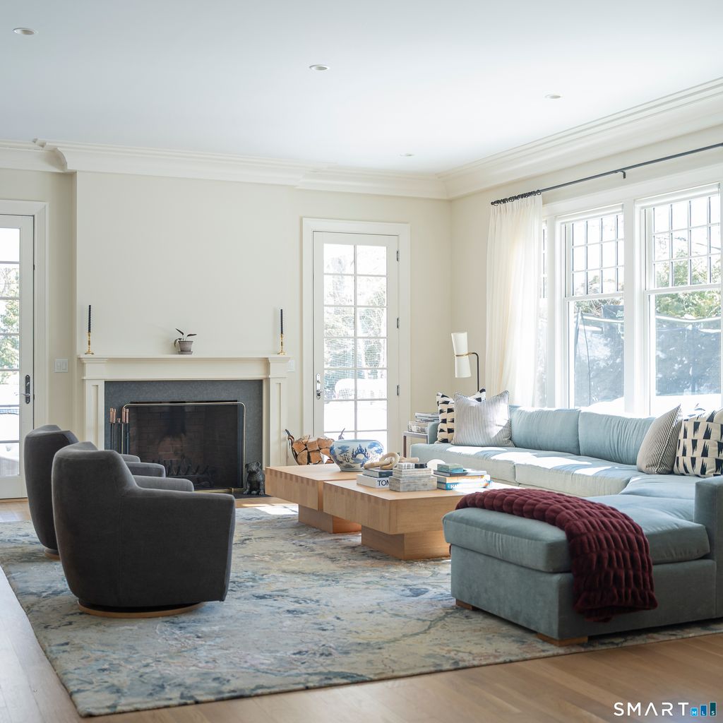 Elegantly positioned in the heart of Riverside, just moments from the shoreline, this distinguished 2018 residence embodies refined luxury and sits on over half an acre of beautifully level property. Encompassing more than 8,300 square feet across three impeccably finished levels, the home is framed by professional landscaping and appointed with a heated pool, cold plunge, sauna and built-in gas grill. Designed for both elevated entertaining and effortless daily living, the main level is anchored by an office with custom millwork, a formal living room and sophisticated dining room with a butler's pantry providing the perfect setting for gatherings. A chef's kitchen featuring an expansive island, custom banquet seating, and an open flow to a gracious family room with doors that lead to a covered terrace with fireplace. A beautifully crafted mudroom connects seamlessly to the three car heated garage. Upstairs, the tranquil primary suite serves as a luxurious retreat with dual walk-in closets and a spa-inspired bath, accompanied by four additional well proportioned bedrooms, three baths, and a thoughtfully designed laundry room. The walk out lower level is equally impressive,highlighted by high ceilings and exceptional amenities including a mahogany-paneled wine cellar, expansive recreation room, media room, sixth bedroom with full bath, and a fully equipped gym.