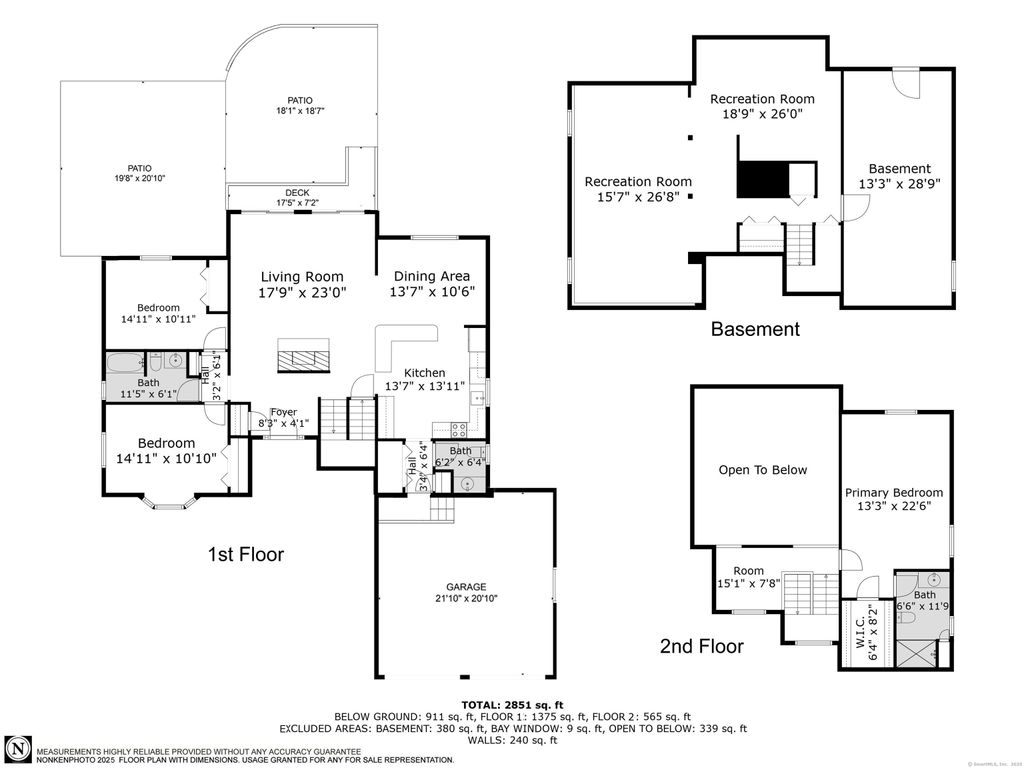 The first floor is thoughtfully designed for both everyday living and entertaining. The entry opens to a dramatic great room with soaring cathedral ceilings and a striking stone fireplace. The open floor plan enhances the flow and light. The updated kitchen features granite countertops, white cabinetry, tiled backsplash and flooring, stainless-steel appliances, and a island with cabinets for added functionality and storage. Two generously sized bedrooms on this level share a full bath with a tiled tub and glass shower enclosure, providing convenient one-floor living. Upstairs, the private primary suite, complete with a spacious walk-in closet, a dedicated office nook, and full bath with frameless tiled walk-in shower in place of the original tub. A loft overlooking the great room adds flexible space, perfect for reading and relaxing. The finished lower level expands the living area with 700 heated square feet of open space with new carpeting, ideal for a gym, media room, or playroom along with ample storage. Outdoor living is just as inviting, with deck, stone wall, and two patios that extend the living space into the professionally landscaped yard, enhanced by a sprinkler system for easy maintenance. Additional highlights include two separate central air systems for year-round comfort, hardwired for two 220 Volts car chargers, new carpet in basement, fenced backyard, new windows, new heating system and an attached two-car garage.