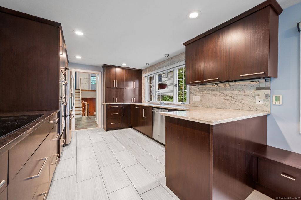 The opportunity you have been hoping for awaits here at 94 Richmond Lane with roughly 3,000 sq ft of living space located in one of West Hartford's most sought after neighborhoods. Many parts of the puzzle are in place yet there is so much potential to add value to this fantastic home! The remodeled kitchen has modern amenities including granite counters, stainless appliances, an induction stove, radiant heated floors and it opens to a spacious dining and living room area with fireplace, built-ins and a wall of windows overlooking the private yard and pool. The upper level hosts the primary suite with a spacious, updated bath and hardwood and 3 additional good sized bedrooms along with a 2nd full bath. Downstairs you will find an additional 900 sq ft of living space in the walk out lower level family room. With access to the new patio, fire pit and pool and fully fenced yard, this is the perfect area for entertaining. There is also a bonus room on the lower level that could be used as a 5th bedroom or home office. Gas heat, central air conditioning and an attached 2 car garage complete this home. Conveniently located within walking distance to Norfeldt School, Hall High School, Eisenhower Park, 1.5 miles to Bishops Corner, 3 miles to West Hartford Center and Blue Back Square, 5.5 miles to downtown Hartford. Do not miss out on this one!