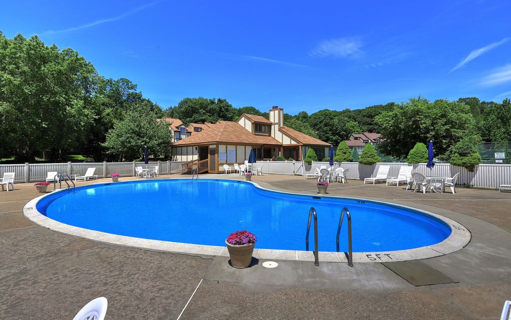 Sought after Oronoque Forest Complex! Turnbury style condo with open floor concept. This spacious 3-bedroom unit is tucked away on side street offering privacy and wooded backyard setting. Bring your vision and style to this fantastic opportunity to update and create the home you want. The main level features soaring cathedral ceilings, living room, fireplace and sliders to large deck. The dining room is great for gatherings, the eat in kitchen has a second deck. The main level primary suite has a walk-in closet and full bath, the den with wet bar would also make great office space. There is also a half bath. The upper level has two more bedrooms, full bath and large loft which is great for media room or more living space. Two car garage has plenty of storage space & the lower level is waiting to be finished. Tons of potential to remodel and make it truly your own. Complex has parklike grounds, pool tennis, pickle ball, clubhouse, pond and city views. Next to Hopkins School, minutes to local hospitals & colleges, Yale, UNH, Southern, train station.