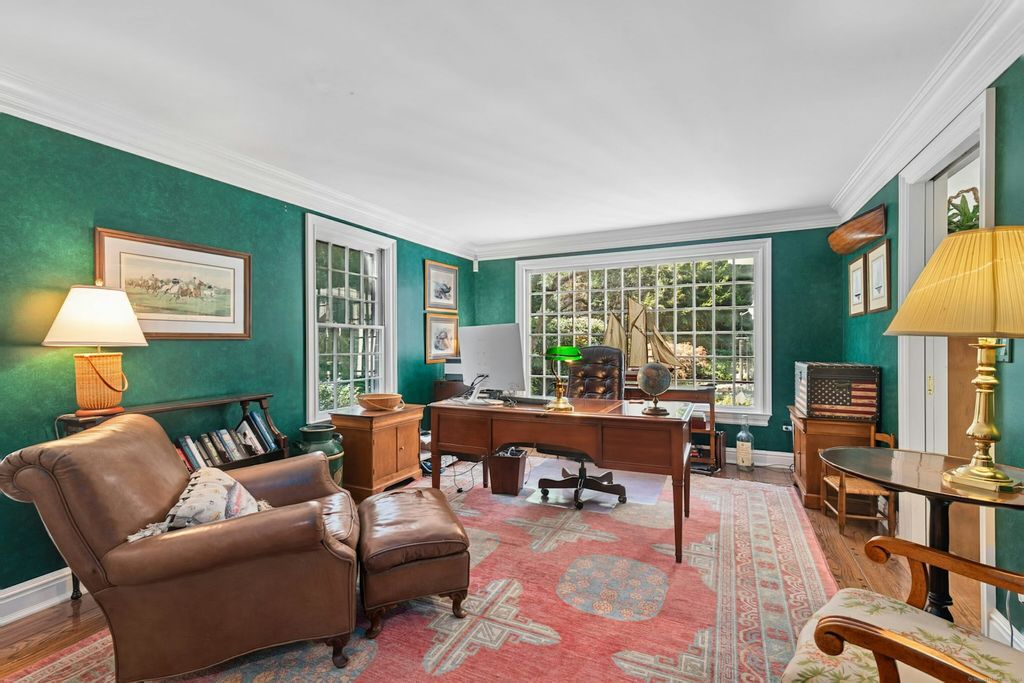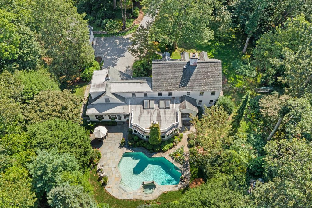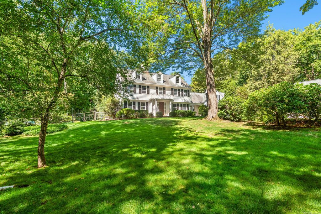 Situated on over two acres on one of New Canaan's most coveted cul-de-sacs, this five-bedroom Colonial offers gracious living in a serene west side setting. The home's thoughtful layout provides both formal and casual spaces for daily life & entertaining. The main level features a generous living room with fireplace, formal dining room, and private study. The heart of the home is an expansive step down 27-foot family room with soaring ceilings, skylights, fireplace, built-ins, and French doors leading out to the flagstone patio, flowering gardens, and in-ground pool and spa. Upstairs, the primary suite includes a spa-like bath w whirlpool tub, while four additional well-proportioned bedrooms and two additional baths offer flexible space for family and guests. Professionally landscaped grounds designed for outdoor enjoyment, level lawn areas, and mature trees provide natural privacy. An attached 2-car garage offers exceptional storage and convenience, and an additional freestanding 2 car garage with stairs to an enormous floored upper level opens endless possibilities. Located minutes from New Canaan's village center, this tranquil setting combines privacy with the ease of town amenities.