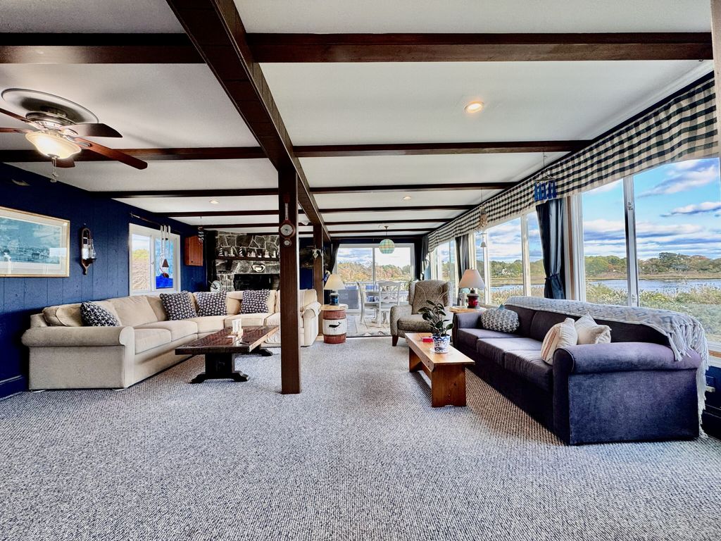 Hard to find, waterfront property with a new 50 ft dock in desirable Lord's Point community! Spend your summers in this wonderful beach community or live year round. First time ever on the market! Something for everyone sitting uniquely on .35 acres and bordering open space with 83 ft of waterfront, a 50 ft dock with 4 tie offs and room for a dry dock so bring your boats! Cape Cod all season home, much more than a waterfront cottage featuring 4 bedrooms, 2 full baths, open and spacious floor plan with lots of windows and ocean views, balcony seating, patio and even built in dock seating. Fun outdoor shed with 4 bunks, electricity and a tv for a fun summer hideout. You can walk to one of 6 beaches (Open Way, Tim's Beach, Boulder Beach, Hopkins Beach, Pebble Beach, and Trestle Beach), ride bikes, play tennis, bocci, basketball, pickleball or clubhouse activities. Close to Mystic Indoor sports, Stonington Borough , Downtown Mystic (great restaurants) and Rhode Island beaches within minutes. Not to mention Foxwoods's Resort and Mohegan Sun Resorts nearby. Hard to get into this community! Plan ahead now! Seller will consider a rent back or must secure suitable housing prior to closing.