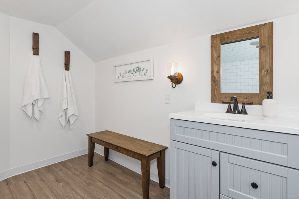 Welcome home! Step inside this Beautiful totally remodeled Cape in 2020 with additional updates since, including a new driveway, kitchen slider, deck and walk in closet in primary bedroom. This inviting three-bedroom, two-bathroom home offers comfort, warmth, an abundance of natural light and gorgeous hardwood floors throughout. The bright and sunny kitchen features sliders that lead to a new deck. Off the kitchen, you'll find a generously sized dining room. The cozy living room provides plenty of space for relaxing evenings. The main level also includes two bedrooms, a laundry area, and an enclosed porch/mudroom. Upstairs, you'll find the primary bedroom with a newly added walk-in closet and a full primary bath. The spacious yard offers plenty of room for outdoor enjoyment and entertaining. This home is turnkey and waiting for you! Conveniently located near major highways, shopping, and dining.
