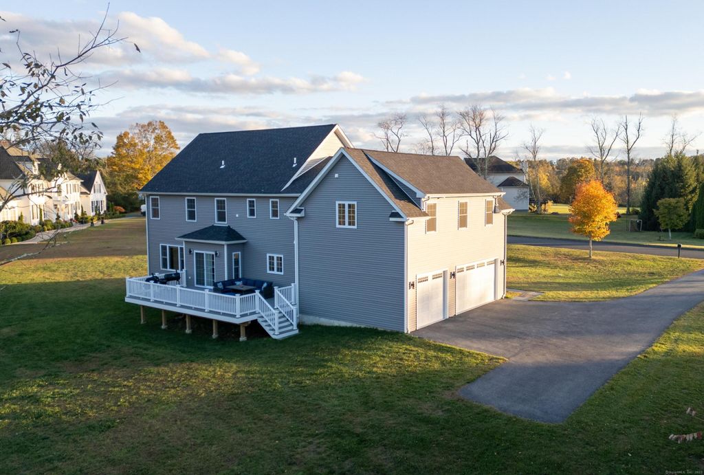 Discover this exquisite 4-bedroom, 3.5-bath custom Colonial set on a majestic 1.44-acre level lot in desirable Farmstead Acres. Blending modern style with timeless tranquility, this luxury home backs to a natural wildlife preserve for ultimate privacy. Designed with future flexibility, the home includes an upgraded septic and furnace for a potential 5th bedroom, 3rd zone heat, and a roughed-in bath with 9' ceilings in the lower level. Exceptional features include hardwood floors, crown moldings, a full lighting package with steam-free mirrors, smart garage doors, ceiling fans, wall-mounted TVs, and all baths pre-wired for bidets. A grand two-story foyer with a white spindle staircase opens to sunlit formal living and dining rooms adorned with modern chandeliers. The family room features a gas fireplace and flows seamlessly into the gourmet kitchen with a sprawling quartz island, pot filler, stainless steel appliances, farmhouse sink, mosaic tile backsplash, and a spacious walk-in pantry. Sliders from the casual dining area lead to an expanded composite deck overlooking the private backyard. Upstairs, the stunning primary suite offers vaulted ceilings, a custom walk-in closet, and a spa-inspired bath with a soaking tub and double vanities. Three additional bedrooms, two full baths and a laundry room complete the level.The walk-out lower level provides endless possibilities, framed, plumbed, and ready for your finishing touch. Three car garage, front porch, and more! Must see!