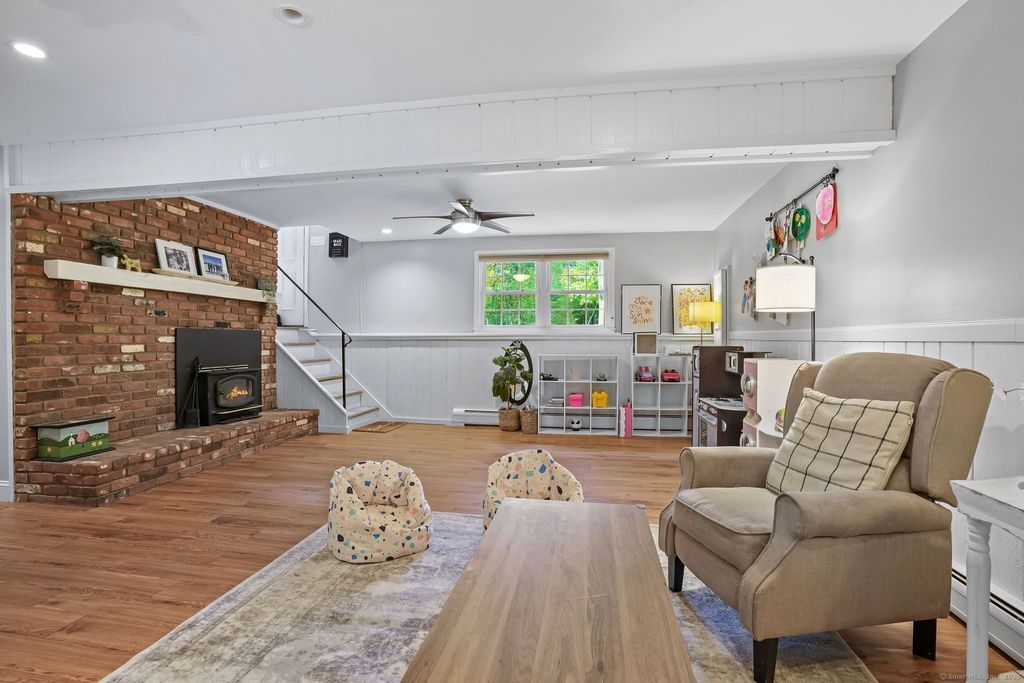 Welcome to 108 Wells Road, located in one of Monroe's most convenient neighborhoods. This beautifully updated home offers over 2,000 sqft of thoughtfully designed living space within the desirable Fawn Hollow district. Located just minutes from a private lake (Lakewood Estates)- for a small fee, enjoy beach access and year-round events-this home delivers a perfect blend of comfort, location & lifestyle. Inside, hardwood floors run through the main level, leading to 3 spacious bedrooms including a primary w/ a private bath. Enjoy central air, city water, and a brand-new hot water tank. The kitchen showcases ceiling-height white shaker cabinets with crown molding, stone countertops, stainless steel appliances & stylish tile backsplash. It opens seamlessly to the dining area, where quadruple-pane French glass doors lead out to a spacious deck-perfect for entertaining or relaxing. A stone patio and expansive gazebo complete the outdoor living space. The freshly painted exterior is enhanced by white brick accents, a six-pane bay window, and architectural roofline details that give the home standout curb appeal. The inviting living room is anchored by a classic fireplace, w/ a separate wall thoughtfully designed for your TV. Downstairs, the finished lower level adds versatility, featuring above-grade windows, newer flooring, and a second fireplace-ideal for a playroom, home office, family room. Move-in ready and ideally located, this home checks all the boxes. Welcome Home