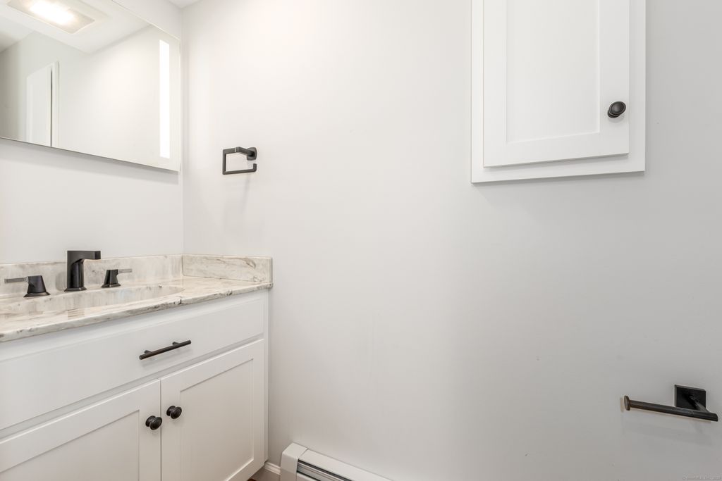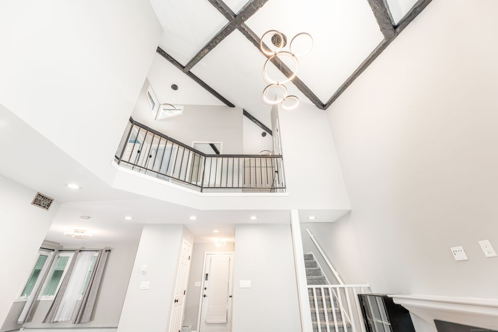 Take advantage of all of the owner's incredible remodeling. This outstanding End Unit, 2 bedroom condo was taken down to the studs and thoughtfully and tastefully updated throughout. Soaring ceilings greet you upon entry into this sophisticated condo. The kitchen has all new cabinetry, appliances and quartz countertops, all illuminated by generous recessed lighting. Chefs will appreciate the pantry and gas stove. Note the media cabinet near the fireplace allowing you a wire-free look. Upstairs two spacious bedrooms with closet organizers are full of natural light. An enclosed shower/tub combo in the sizeable bathroom finishes the upper floor. End unit with patio and view of pond.Pet friendly complex. The unit has 2 garage bays(with doors!). HOA monthly covers A LOT of items! - HVAC (furnace and AC) maintenance and replacement, Heat, HOT water, trash collection, pool access and snow removal. Modern, hassle-free life in a very convenient location- close to UCONN Medical Center, West Hartford Center and highway access. Come visit !