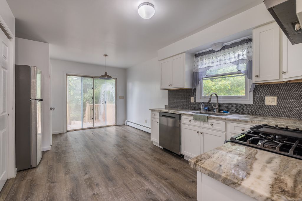 Welcome home to this bright and beautifully updated half-duplex on a cul-de-sac, located in a convenient Stratford neighborhood close to public transportation, shopping, dining, and major highways, including I-95, and Routes 8 and 25. The main level features a spacious living room with updated flooring throughout, creating an open and comfortable feel. The eat-in kitchen offers granite countertops, stainless steel appliances, and modern cabinetry, with easy access to your private deck for relaxing or entertaining outdoors. A half bath and in-unit washer and dryer complete the first floor for added convenience. Upstairs, you'll find three comfortable bedrooms with updated flooring and a refreshed full bath featuring stylish finishes. Additional features include a one-car garage and driveway parking. This home offers comfort, functionality, and a prime commuter location. All tenants 18 years and older are required to submit a full rental application, including credit and background checks, as well as proof of income.