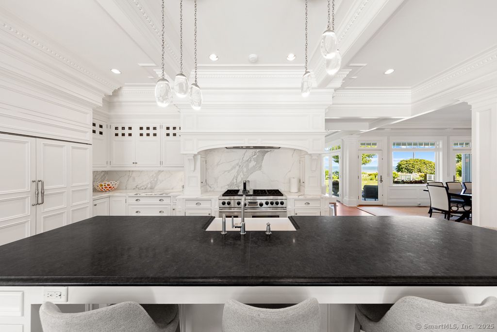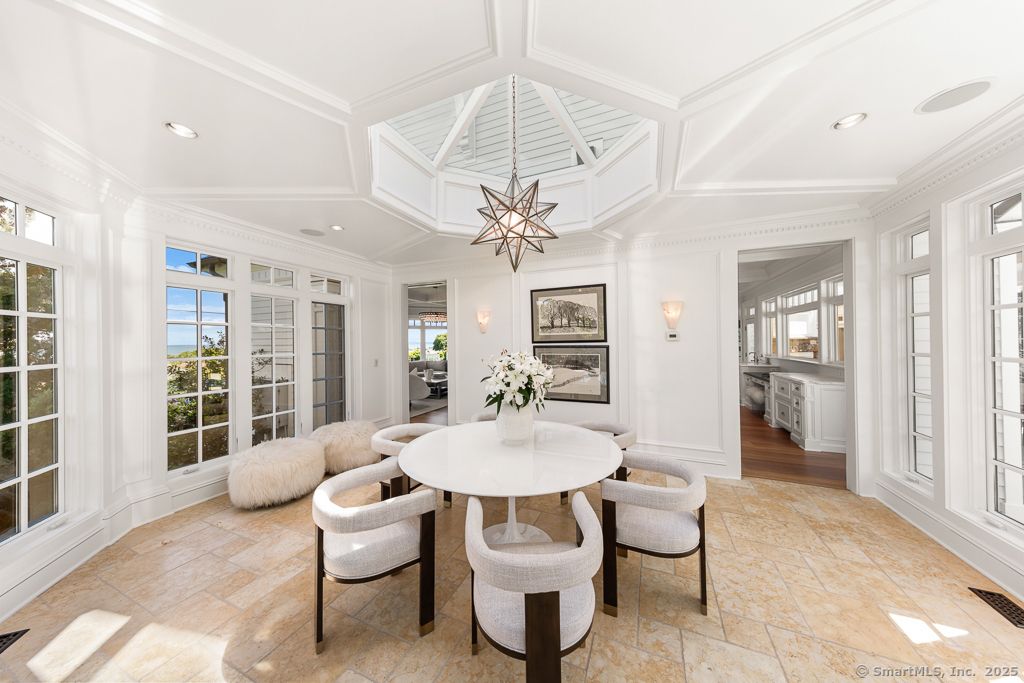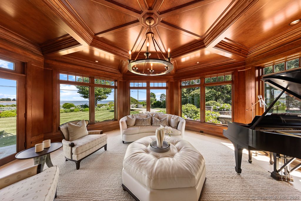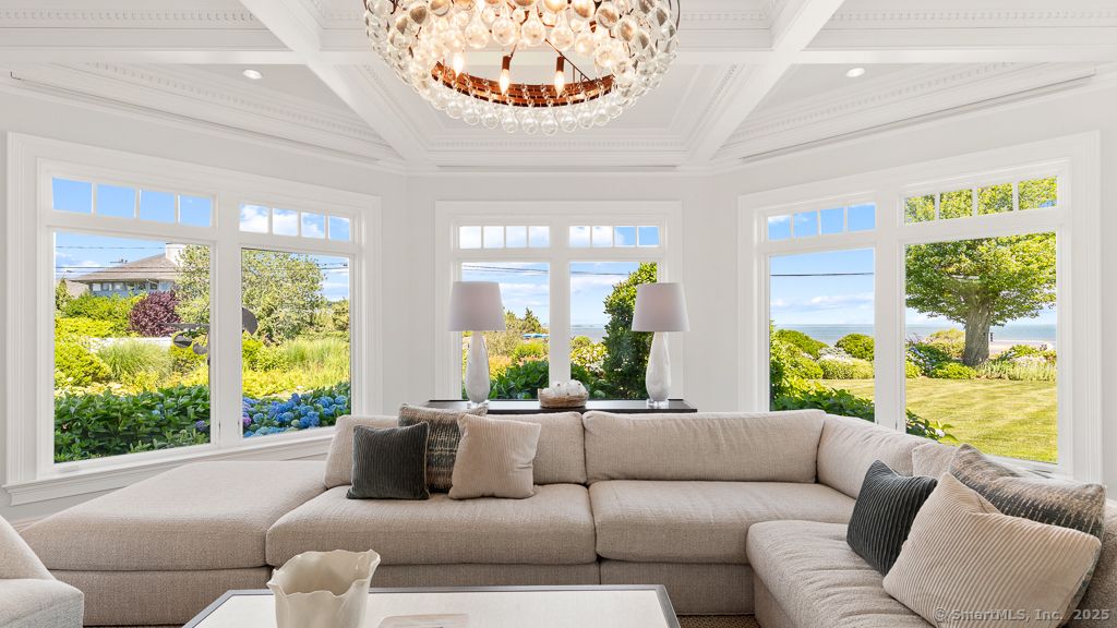 Experience the unparalleled luxury of this exquisite Compo Beach seaside home,a masterpiece of design and craftsmanship, designed by renowned architect Peter Cadoux. Just steps from a private beach, this architectural gem is bathed in natural light and boasts breathtaking panoramic water views from nearly every room.The full chef's kitchen opens to a radiant sunroom with a glass ceiling, perfect for quietly enjoying the seaside ambiance. Entertain guests in the adjoining family room with a grand fireplace, the elegant dining room, and the striking music room all featuring wrap-around windows that showcase panoramic views of the Long Island Sound.The upstairs primary suite is a sanctuary with front and back balconies,a spa-like primary bath,an upstairs office and stunning views. Two additional bedrooms with a shared bath and a guest room with a private bath and balcony overlooking the Sound complete the second floor.The third floor offers two more bedrooms or flex space, a balcony overlooking the Sound, and a full bath.The exquisite craftsmanship continues on the lower level, a recreational paradise featuring a full gym, a lounge area with a fireplace, a media room, a pool table area with a bar, a fabulous wine room, and an extraordinary aquarium! Enjoy working from home in your private office or relax by the heated pool and spa. An outdoor kitchen enhances your charming and private backyard and also includes access to two tennis courts. Live every day like you're on vacation!