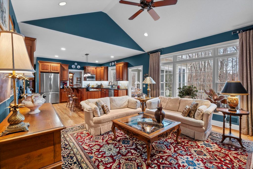Beautifully appointed free standing home in Hatheway Farms, one of Suffield's most desireable 55+ neighborhoods. This upscale residence offers 9' ceilings, hardwood floors throughout the 1st floor, & an open concept kitchen/family room configuration. The dramatic dining room is perfect for all occassions with French doors & more detailed molding. The 1st floor primary suite offers many special features such as a tray ceiling & walk-in closet. The primary bath is lovely with double sinks, a jetted tub, & newer stall shower. The open kitchen features stainless appliances, granite counters, center island w/breakfast bar flowing into the family room with vaulted ceiling, gas fired fireplace, & built-in cabinetry. The rear 4 season sunroom is a delight with 3 sides of windows overlooking the very private back yard & access to the trex deck with its under rail lighting & automatic awning for extra shade... the perfect spot to enjoy the sights & sounds of nature. The upper level offers 3 more spacious bedrooms & a 2nd full bath. Incredible finished walkout lower level with beautiful office with French doors & built in custom cabinets. Located in the town of Suffield known for its charming New England character, scenic farms, & vibrant community amenities..this home delivers comfort, high quality, & convenience in a truly special setting.
