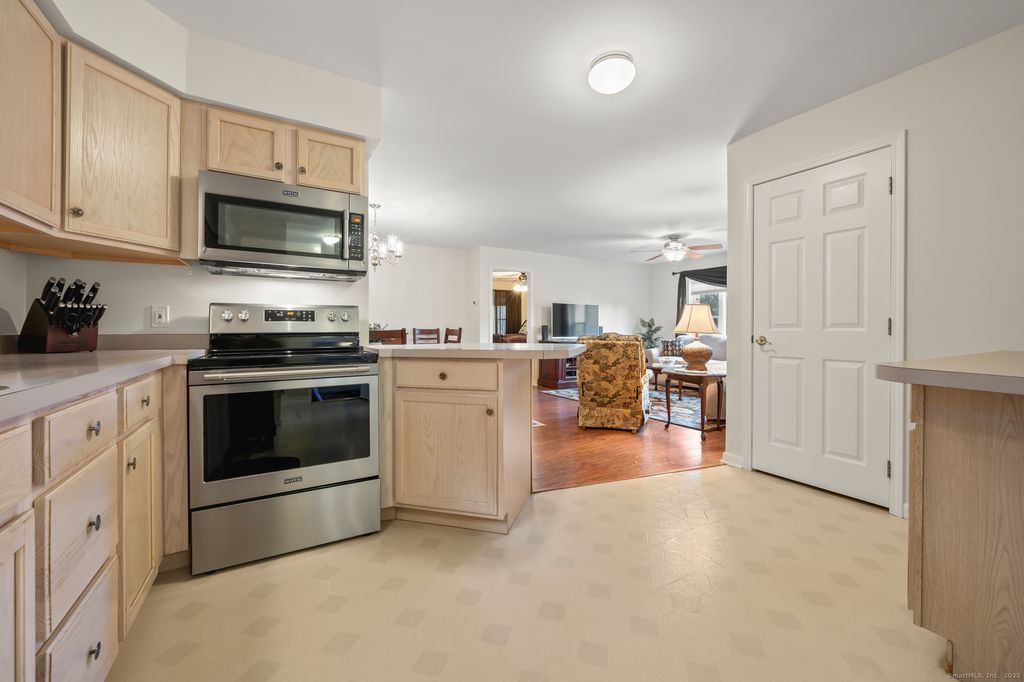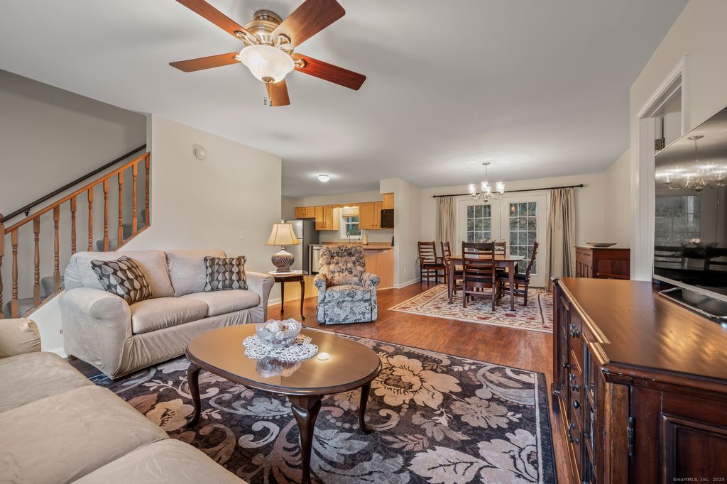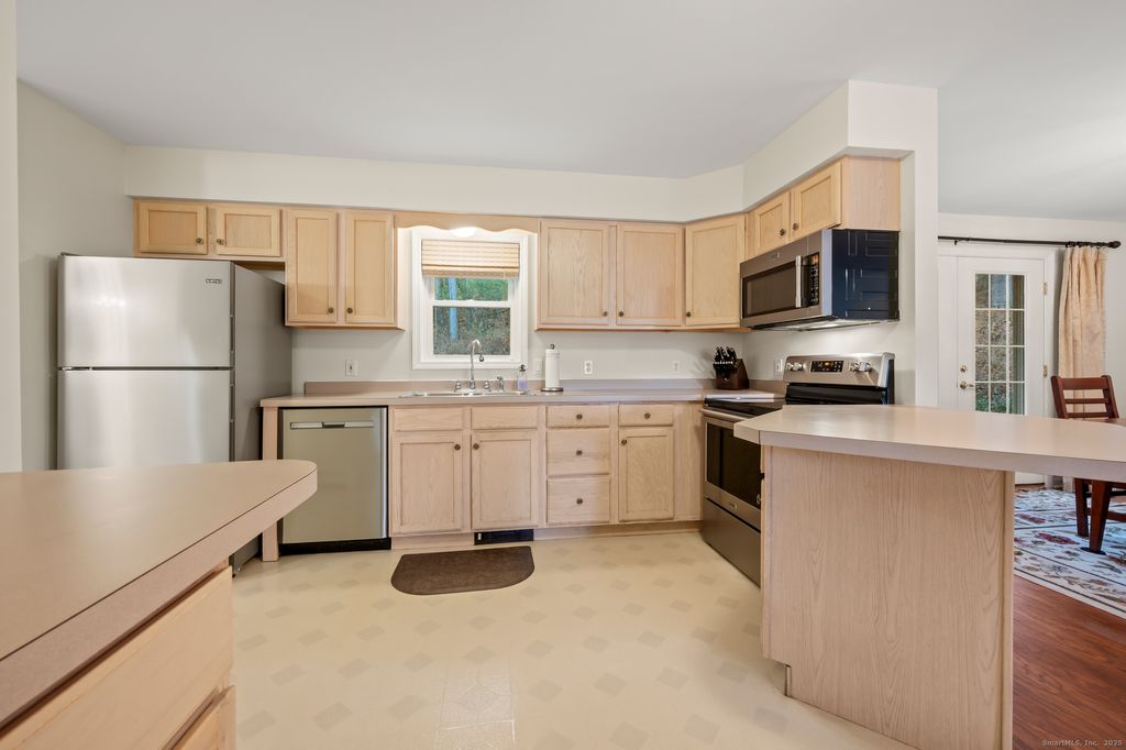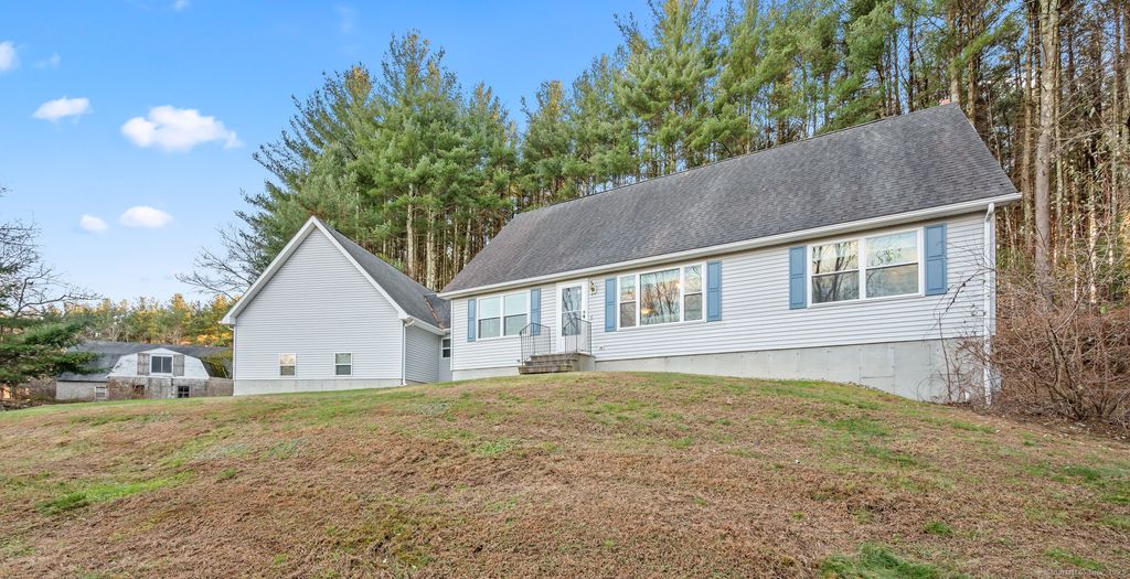 Meticulously cared for 7 Room cape style home on 2.95 private acres in North Coventry! This well maintained home has many features including a first floor master bedroom suite, an open floor plan that seamlessly connects the kitchen, living room and dining room and an oversized 3 car garage! On the main level you'll also find Bedroom 2 which has an attached full bath. The Breezeway has been converted to a den with sliders leading to the patio and access to the back yard. The kitchen has an abundance of upper and lower cabinet space, including a beverage center and breakfast bar. Everything you need is on the main level, including the washer and dryer. Another spacious bedroom with adjoining multipurpose room is on upper level along with a spacious, floored walk in attic! The interior was recently painted including walls, ceilings and doors. Harvey windows and French Door in dining room, water treatment system, washer & dryer, LVP flooring, kitchen appliances and, garage door openers with remote monitoring and operation are some of the recent upgrades. Smart home devices such as the programmable thermostats, Nest smoke and CO alarms and ring cameras help you to feel safe and comfortable. The drywell for the water treatment system, underground gutters, generator hook and a removable kennel with ceiling are added bonuses! 1295 North River Rd. is conveniently located just about 5 miles from UCONN Storrs and ECSU, 25 minutes to Hartford and 35 minutes to Bradley Airport.