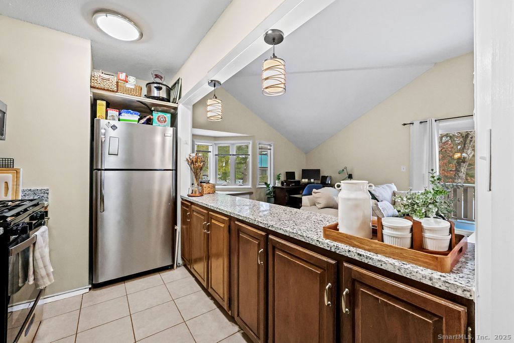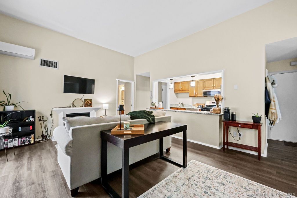 Welcome to 9 Talcott Ridge! This immaculate, modern, sun-filled, 2nd floor spacious apartment is aroung the corner from the UConn Health. This turn-key condo features a remodeled kitchen with newer appliances and lighting. The kitchen opens to a spacious living room area with new flooring, wood burning fireplace w/ mantel and TV mount--perfect space for entertaining family and friends or for enjoying a quiet evening on the couch. The living room also features sliding doors for access to the private deck w/ pool views. Enjoy a good-size primary bedroom with walk-in closet and spacious bathroom. A private laundry room with closet is located off the bedroom. Additional large storage area located in the garage bay for this unit. 9 Talcott Ridge is just steps from the private community pool for hours of enjoyment and relaxation. Tenant responsible for credit, background, eviction check--ask listing agents for more info. Don't miss your chance to enjoy living in the heart of Farmington--easy access to the highway and near shopping, restaurants, & UConn Hospital and School of Medicine.