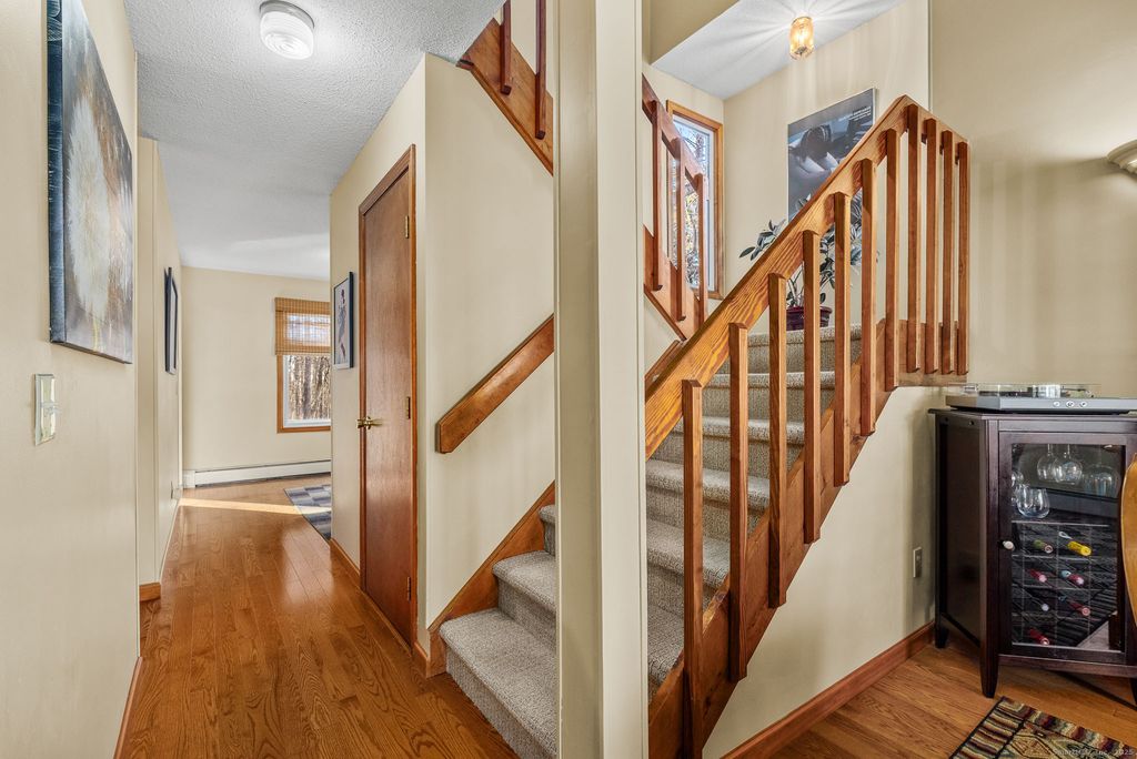 Discover this elegant 3-bedroom, 2.5-bath home, perfectly positioned in a quiet no-outlet neighborhood! Inside, a bright vaulted living room creates a grand first impression, while the open kitchen and family room offer seamless flow for upscale everyday living and effortless entertaining. The family room features a new (2024) propane fireplace and direct access to a private deck overlooking the serene backyard. The kitchen and dining area are filled with natural light, offering the perfect setting for shared meals, conversation, and making memories. The main level also includes a dedicated office and a stylish half bath. Upstairs, the spacious primary suite presents a walk-in closet, double-sink en suite, and a private balcony-your own luxurious retreat for morning coffee or evening relaxation. Two additional bedrooms and a full bath complete the upper level for added convenience. The finished basement provides versatile space ideal for a media room, fitness area, or recreation space. Additional highlights include central air and an attached two-car garage, ensuring year-round comfort and convenience. A professionally designed hardscape was recently added off the family room, creating an outdoor entertaining space that seamlessly connects the home to its natural surroundings while providing an inviting area for year-round enjoyment.This home is generator-ready and sits in a prime location just minutes from everyday essentials.