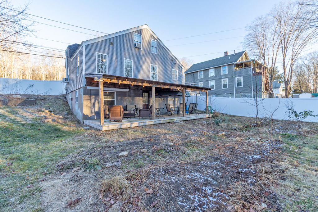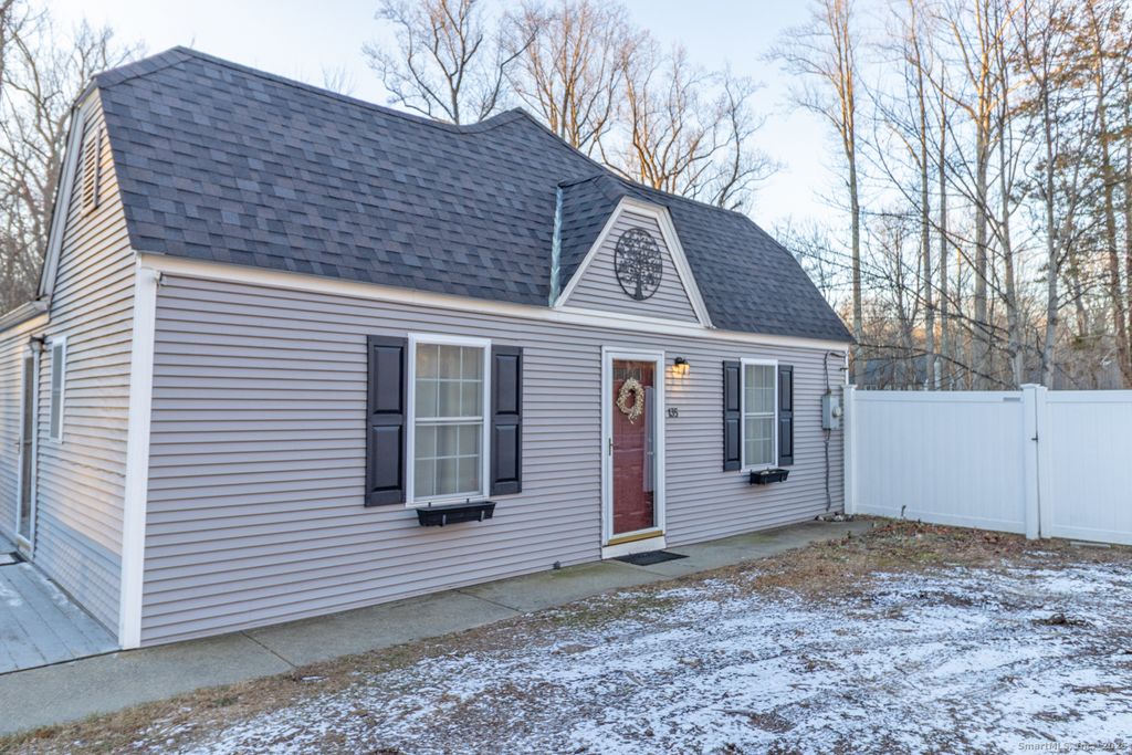 Welcome home to this beautifully updated Cape set on 1.42 acres with a spacious, fully fenced yard. Thoughtfully refreshed throughout, this charming home offers a bright eat-in kitchen that opens to an elevated deck-perfect for morning coffee or evening grilling. The cozy living room features warm natural light, creating an ideal space to relax or entertain. Convenience shines with a first-floor bedroom and a renovated full bath, offering true one-level living when needed. Upstairs, you'll find additional flex space-great for a home office, guest room, or creative retreat. The walk-out lower level adds even more potential. Currently unfinished, it includes laundry and opens to a covered deck overlooking the private, tree-lined backyard. With modern updates, outdoor living options, and plenty of space to grow, this turnkey Cape delivers comfort, charm, and convenience both inside and out.
