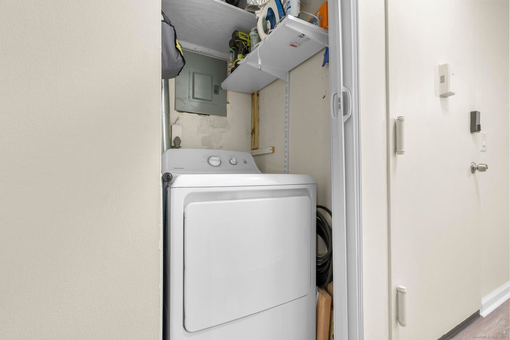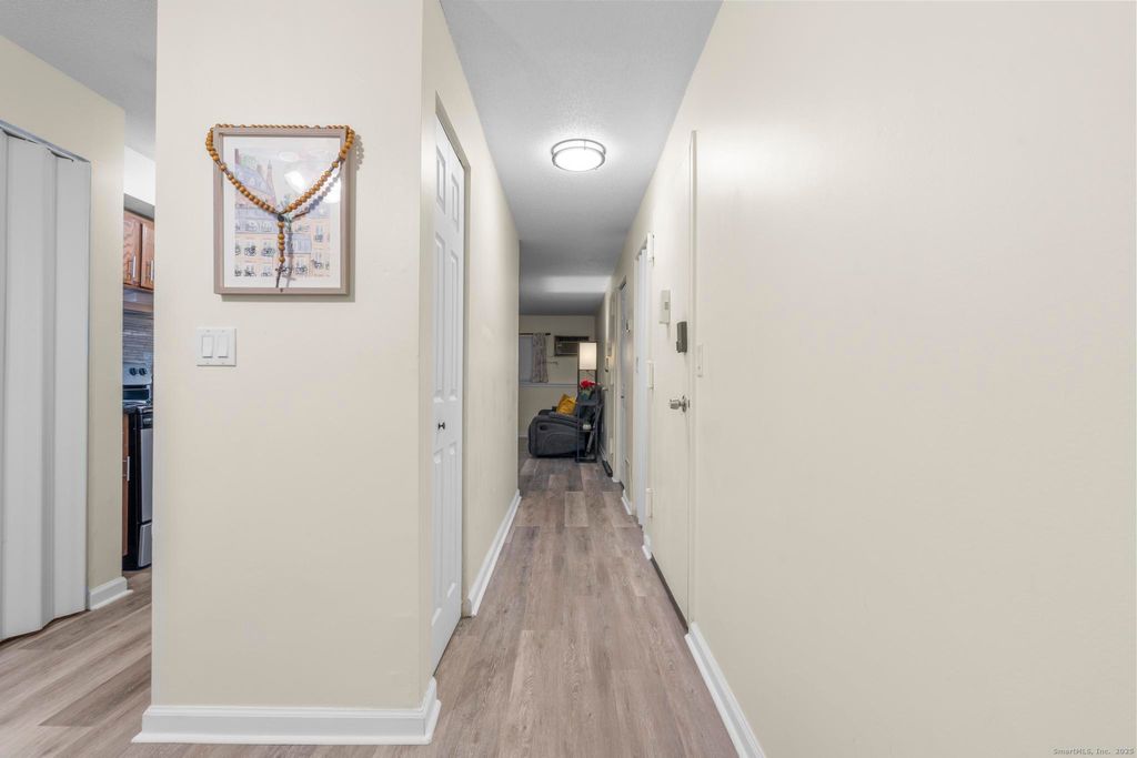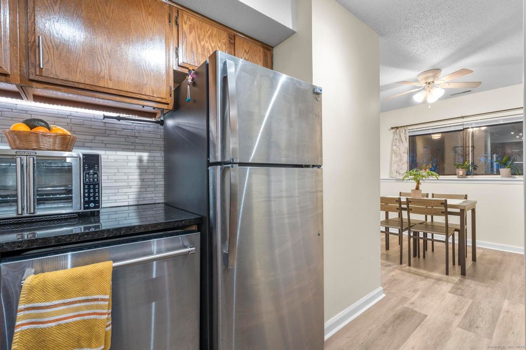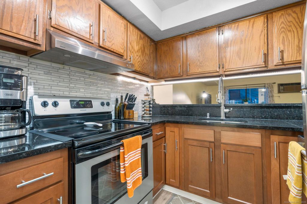 Rarely available and affordably priced condo in Southington. This lower-level 1-bedroom, 1-bath unit offers a functional and spacious layout with new flooring and convenient in-unit washer/dryer hookups. The bedroom features recessed lighting and a large double-rack closet. The home includes a large living room, dining area, and a galley kitchen equipped with stainless steel appliances-electric stove, refrigerator, dishwasher along with granite countertops and ample cabinet storage. Additional features include two entrances (front and back) and a new hot water heater. Approximately five steps lead down to the unit. Property sold AS-IS. Located close to everyday conveniences such as shopping, dining, and local amenities. The property is also near Veterans Memorial Park, which offers a seasonal pool and splash pad. This condo provides a low-maintenance living option in a convenient Southington location.