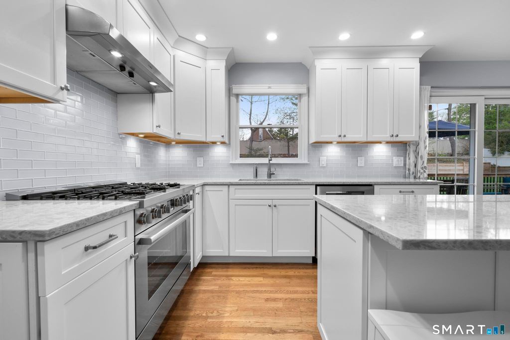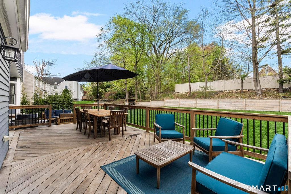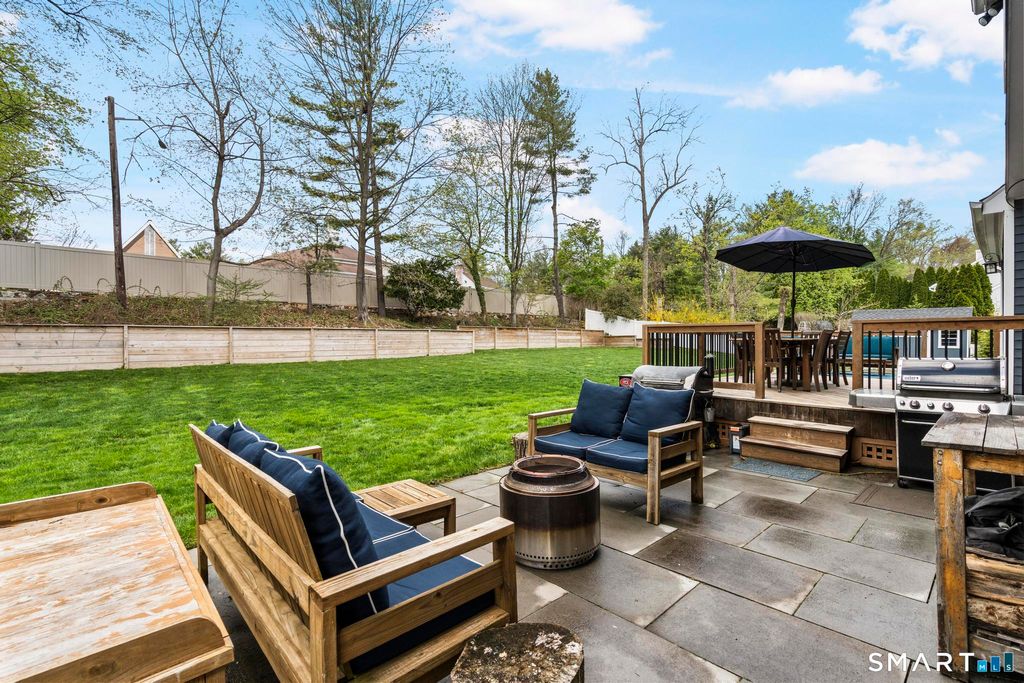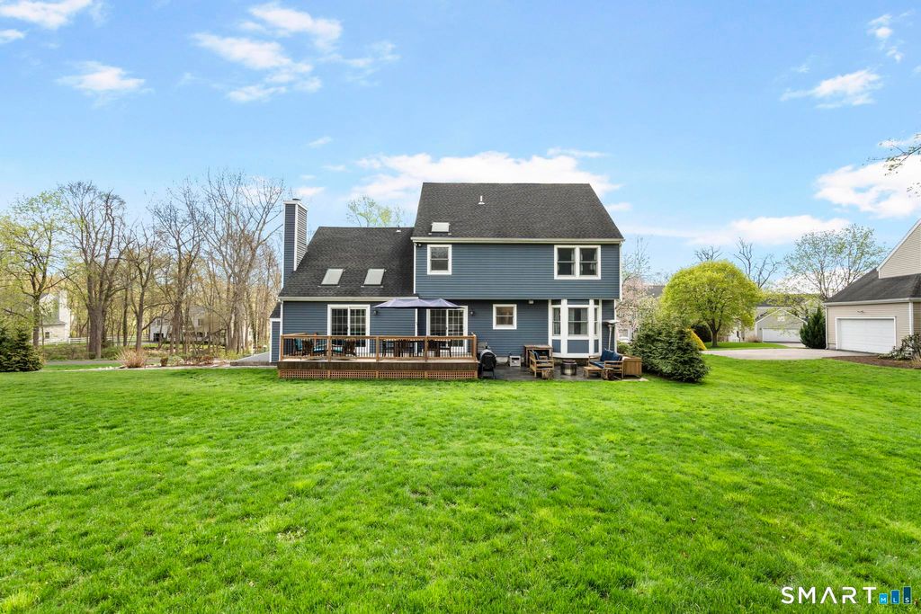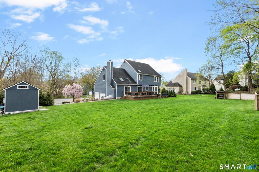 Tucked away on a quiet cul-de-sac in Stamford's highly sought-after Newfield neighborhood, this beautifully updated 4 bedroom, 2.5 bath center hall Colonial offers the perfect blend of elegance, comfort, & everyday functionality. Designed for both modern living & effortless entertaining, the home features a seamless flow with spacious formal living & dining rooms, ideal for gatherings. The stunning, brand new eat in kitchen with stainless steel Bosch appliances & center island opens to a sun drenched family room with vaulted ceilings, skylights, & a wood burning fireplace. A convenient main level laundry room adds to the home's thoughtful layout. Two sets of sliders lead to an oversized IPE deck & bluestone patio, creating an exceptional outdoor setting overlooking the expansive, .46 acre property framed by lush, mature plantings. The luxurious primary suite is a true retreat, complete with vaulted ceilings, custom millwork, heated floors, & a spa inspired bath with dual vanity, soaking tub, & walk in shower. Three additional spacious bedrooms & a beautifully renovated hall bath complete the upper level. A walk up attic offers excellent storage & future expansion potential, while the expansive finished lower level provides incredible flexibility for a playroom, gym, and/or home office. A large two car garage completes the home. Enjoy the convenience of city water, sewer, & gas, all just minutes to shopping, dining, parks, houses of worship, & Metro North for an easy commute.