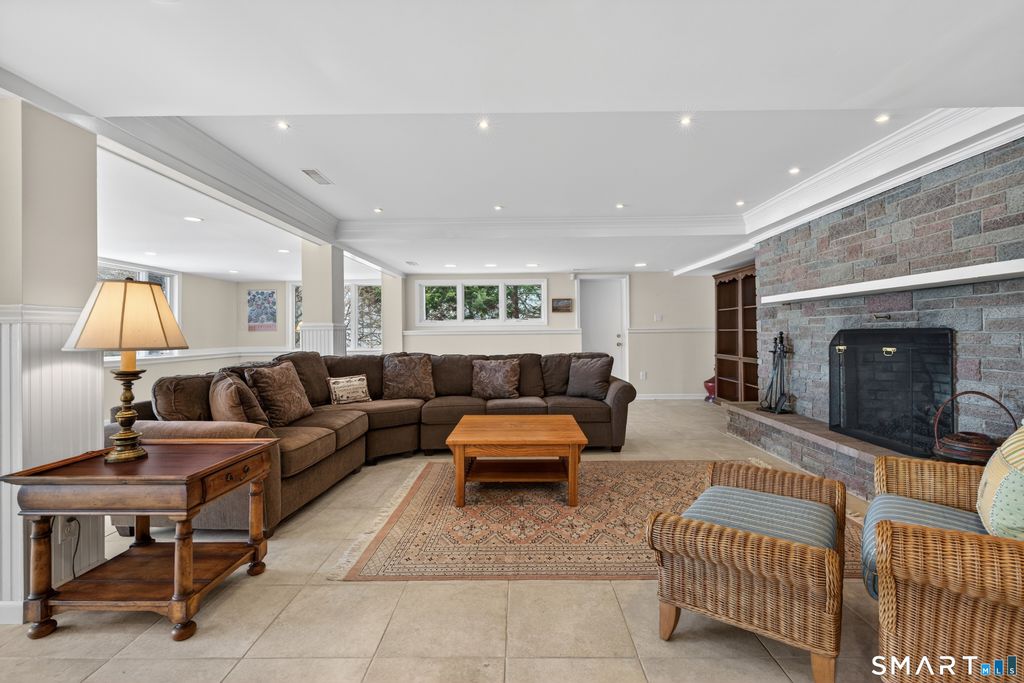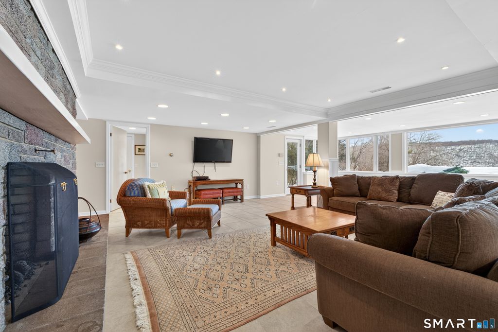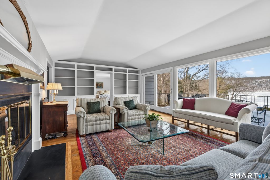 Welcome to this gorgeous Chimney Point Cove waterfront in the sought-after Candlewood Lake Club. Only 10 houses on the lake can claim this coveted location! This spacious 4,000+ sq ft home features a grand living room with a stone fireplace and a wall of windows framing spectacular, expansive northern mountainous views. Ideal for multi-level living, the first floor boasts a primary suite with stunning lake views, a second bedroom, and two full baths. The main level also features a gourmet kitchen, cozy den w/ fireplace, formal dining room with a bar-perfect for entertaining. The bright expansive finished lower level offers a massive great room with a fireplace and 2 private, versatile bonus rooms with baths/closets for guests plus private walk out access to waterfront. Set on a unique, level half-acre lot with a circular driveway and detached 2-car garage. Enjoy elite club amenities: golf, tennis, pickleball, marina, and beach. A lake lover's dream-all just 90 minutes from NYC. Membership to CLC is optional (note: one time $15,000 initiation fee with Annual Club Dues $5,200 + CT State Tax Mandatory Roads ($475) and water fees ($600) are mandatory for all owners.