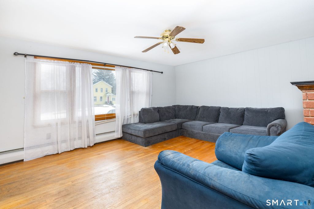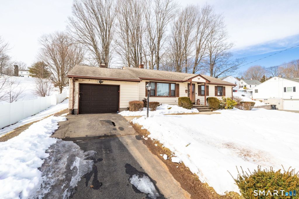 Welcome to this charming 3 bedroom, 2 bathroom ranch style home located on the East side of Meriden, offers comfortable one level living with additional finished space below. Step inside to hardwood floors throughout and a bright living room featuring a cozy fireplace and ceiling fan the perfect place to relax or gather with friends. The eat-in kitchen offers ample cabinets and space for dining. The sunroom provides flexible space ideal for a bonus sitting area, home office, or hobby room. The finished lower level expands your living options with a spacious family room area, built-in bar, recessed lighting, and a bathroom perfect for entertaining or extended stays. Additional highlights include a 1 car attached garage and a large backyard, offering plenty of room for outdoor enjoyment, gardening, or recreation. This well maintained home blends warmth, functionality, and space both inside and out. Situated in a quiet neighborhood but conveniently located near restaurants, shops, and major highways!