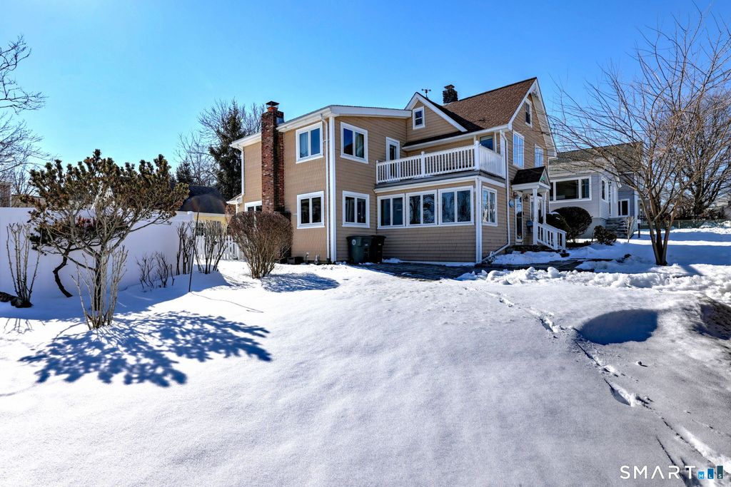 With water views from every floor, and no flood insurance required, this spacious four-bedroom home is perfect for year-round living, a weekend retreat, or a turnkey investment property. Known as "Scio By The Sound" it is currently used as a second home and an Airbnb. An open floor plan blends the charm of an older home with modern convenience, including central air conditioning. The large lot is a rare find in a beach neighborhood, and allows for a lovely inground pool, which was recently upgraded with a privacy fence, heater and new liner. The garage includes an unfinished bonus room suitable for a workshop, studio or storage, and a walk up attic offers additional potential. Both the master and second bedrooms have access to a shared balcony with water views. Other features include a decorative beach stone fireplace, and a woodburning fireplace in the large family room. Relax as you enjoy dining "al fresco" on the back deck, with its retractable screens, or settle into the cozy breakfast nook and enjoy the water views while sipping coffee. Act now and experience coastal living at its best in the sought-after town of Milford, with its miles of shoreline and beaches, a classic New England green, dining, shopping, and abundant art and recreational opportunities. This beautiful location is only about 65 miles from NYC with train service available.