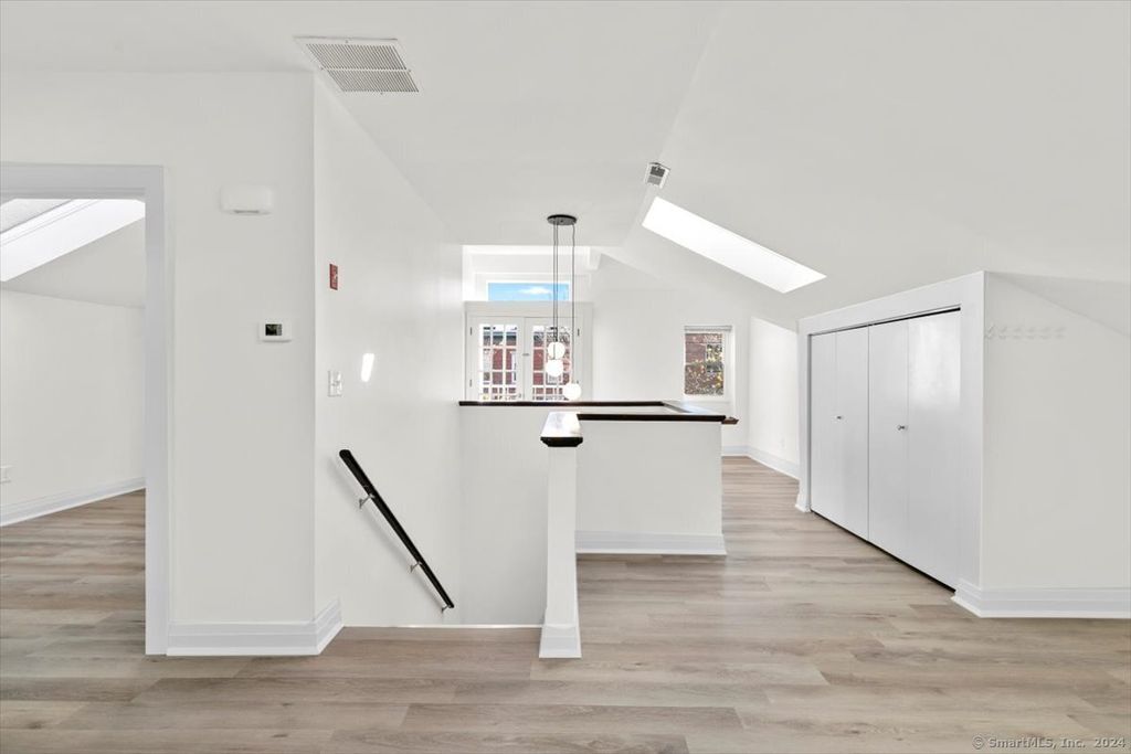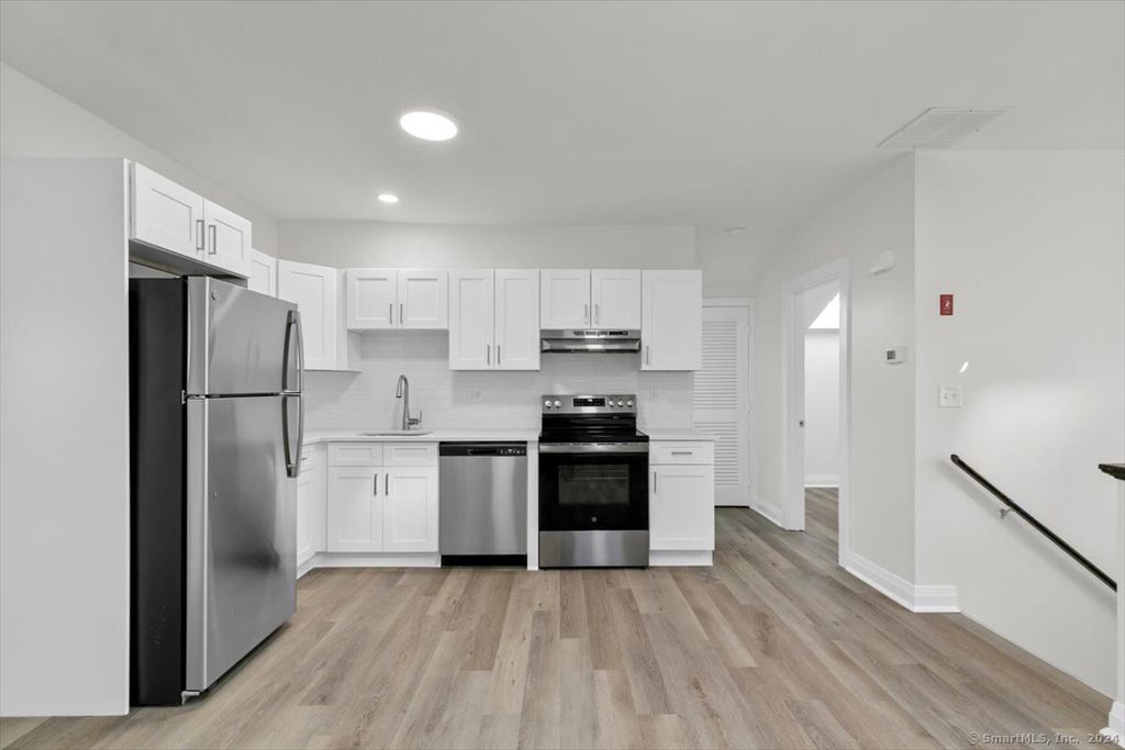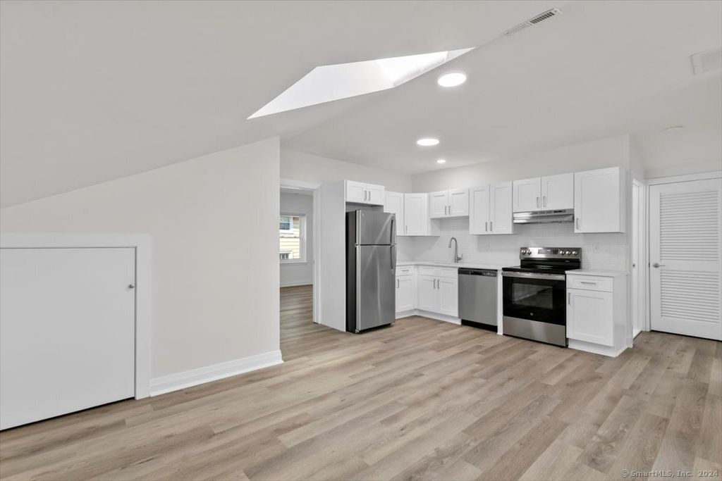 Stunning East Rock apartment, fully renovated with two bedrooms & one full bath! This incredible third floor unit includes new floors, new paint, new lightning & amazing updates throughout. The apartment offers a lovely open floor plan with spacious living room with skylights that flood the unit with fantastic natural light. Two French doors from the living room lead to a small private outdoor balcony overlooking State Street. The brand new kitchen features white cabinets, S/S appliances & white backsplash. Two large bedrooms with amazing closet space and share a fully updated bathroom. In unit laundry. Step out your door to the most incredible East Rock restaurants, gourmet markets, coffee shops & shopping. Close to Yale, shuttles & Downtown. Central air conditioning! Available June 1 with good credit, 1.5 months security.