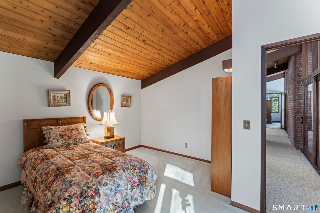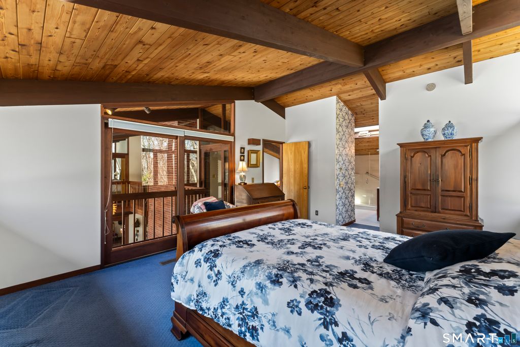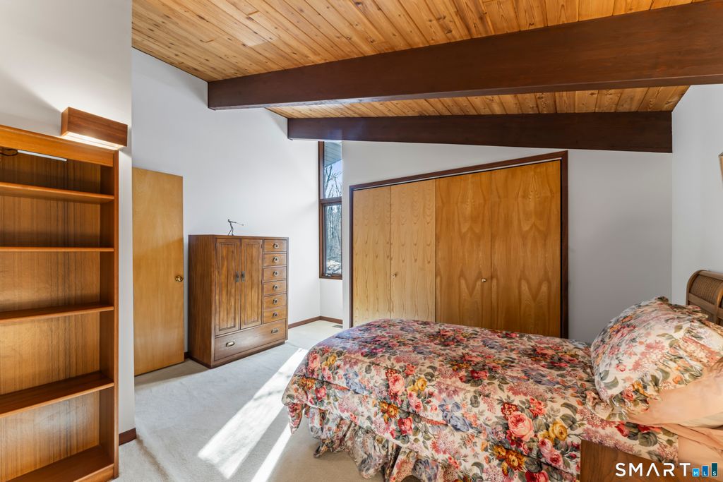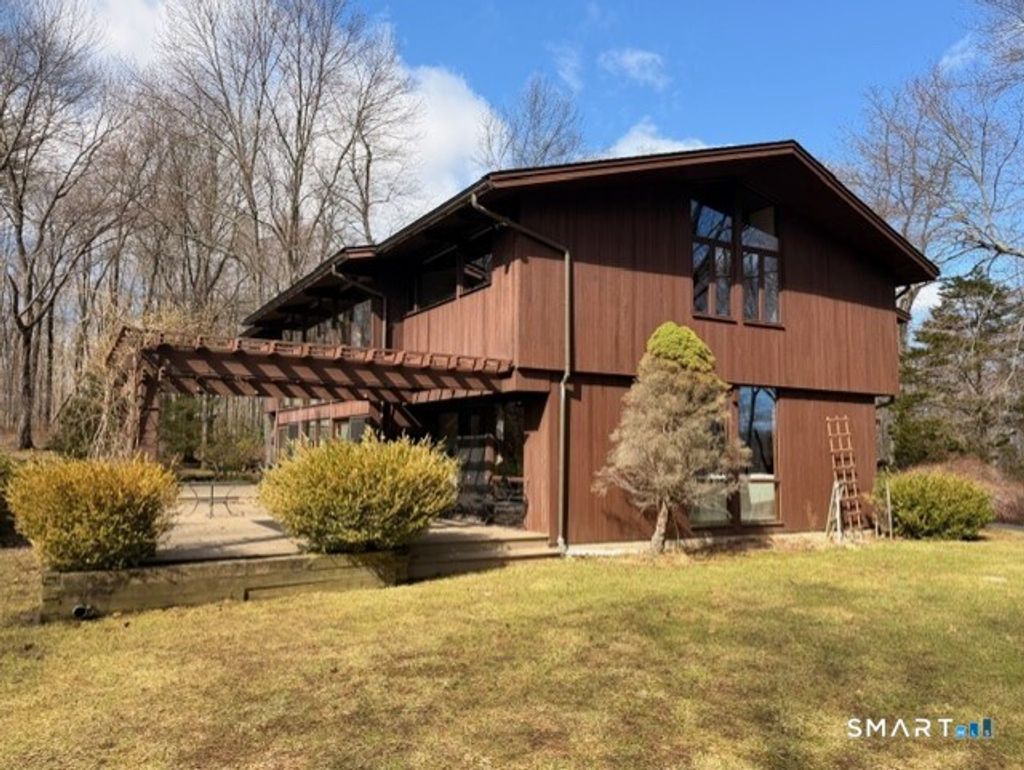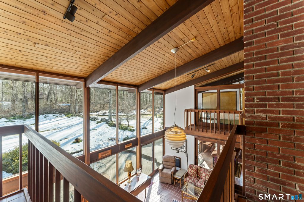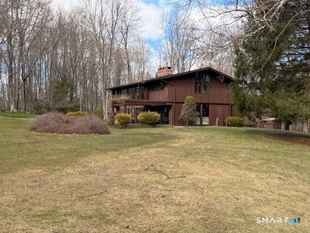 Nestled in a serene, park-like setting in the highly sought-after Codfish Hill neighborhood of Bethel, this exceptional property offers the ultimate retreat for nature lovers. Set on 2.73 beautifully manicured acres, this custom-built contemporary home-crafted by its original owners-delivers over 3,500 sq. ft. of distinctive living space that is truly one-of-a-kind. Unlike anything else on the market, this 3-bedroom, 2.5-bath residence showcases extraordinary craftsmanship, including custom woodwork throughout and striking architectural details. Sunlight pours in through walls of windows, creating a warm, inviting atmosphere while offering breathtaking views of the surrounding landscape and abundant wildlife. The dramatic two-story sunroom is the heart of the home, featuring floor-to-ceiling windows and a stunning fireplace-perfect for entertaining or simply relaxing while taking in the peaceful setting. Exposed beams and rich hardwood trim add character and charm at every turn. Meticulously maintained, this home blends privacy, quality, and uniqueness in a way that's rarely found. A matching outbuilding near the driveway includes a garage and fully powered workshop-ideal for woodworking, hobbies, or gardening enthusiasts. A rare opportunity to own a truly special property in one of Bethel's most desirable locations-this is a must-see!