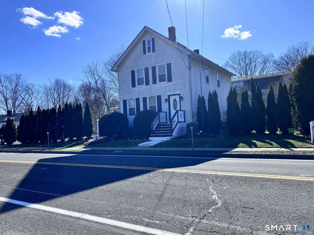 Mixed-use zoning (convertible to full commercial or multi unit with town permits) 2,005 sq ft total / 1,672 sq ft finished living space..30 acre lot with generous parking (10+ vehicles) Year built: 1893 with numerous modern updates. Rare to find a house in Guilford with "public water". Current layout: First Floor: Professional medical office space, 4 office space + half bath. Second Floor: 1-bedroom apartment, living room, kitchen & full bath. Owner-occupied, well maintained Interior Features: 6 total rooms + kitchen + 1 1/2 baths-Brand-new 21 windows + 4 basement and 2 attic windows.-New electrical panel & 200-amp service. Alarm system with cameras. Public gas & new furnace. Central cooling + warm air system. Updated plumbing with insulated piping. Renovated bathrooms. Concrete basement floor with drainage system. Unfinished walk-up attic offering 800+ sq ft of storage or future living space. Exterior & Location Highlights: Beautiful landscaping and privacy-enhancing arborvitae fence. Newly built covered porch. New sidewalk and walking path. Property is half a mile from police and fire departments road receives priority plowing and electricity during major storms, ensuring excellent storm reliability. Walking distance to:-Adams High School-The Guilford Green-2 miles to Jacob Beach. Perfect visibility for: attorney, accountant, esthetician, medical practice, chiropractor,therapy office, insurance, or satellite real estate office. Ideal for live-work professional or investment