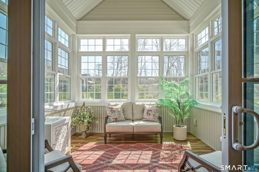 Welcome to Regency at Prospect, an elite 55+ sanctuary set upon 182 acres of serene landscape. This custom-built Alder model masterfully balances rural tranquility with urban convenience, located just minutes from I-84, The Merritt, and Route 8. Artistry Design-Experience with an unparalleled level of quality in this custom-built Alder model. Boasting over $175,000 in exquisite upgrades, every corner of this residence reflects a commitment to quality and style. Including flooring, lighting, a gourmet kitchen package with high-end appliances, a mud rm with built-in shelves, a beamed ceiling in the Primary Bedrm, a 3-season room, and a laundry rm with cabinets. Experience an airy, open floor plan with soaring ceilings and stained hardwood floors in the main living area. The spacious living rm features a gas fireplace with a marble hearth and a 4-foot extension, leading through triple sliders to a stunning 3-season rm. The 3-Season rm retreat to enjoy your morning coffee under cathedral ceilings, with a paddle fan and views of the tranquil countryside. Stately French doors open to a front rm perfect for a professional home office, guest suite, or parlor. A side hallway leads to a laundry room with custom cabinetry and a mudroom featuring built-in storage that doubles as an expansive pantry. 2nd level: L-shaped loft family room with views of 1st level, spacious 2nd bedrm with sitting area and walk-in closet, full bath tastefully done, finished walk-in storage rm. View the video!