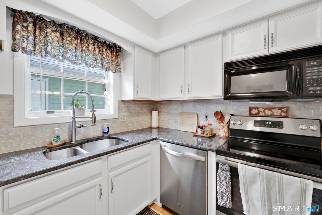 AWESOME LOCATION for this 2 bed, 1 full bath, first floor RANCH style condo at highly sought after BURR MEADOW condo community. Open, bright, and inviting layout with a fresh modern paint palette and stylish updated flooring throughout. Sun-filled living room space with fireplace and access to covered patio. Spacious REMODELED kitchen with gorgeous white cabinetry, stainless steel appliances, and tile backsplash overlooks the dining room area. IN-UNIT LAUNDRY. Great location within the complex close to ample guest parking. Central air and city sewer/water. Large exterior storage unit. Complex offers inground pool. Situated in the sought after ORCHARD HILL ELEMENTARY SCHOOL DISTRICT. Tranquil setting but very convenient to area schools, Evergreen Walk, Buckland Mall, Costco, Whole Foods, and I-84 / I-291.