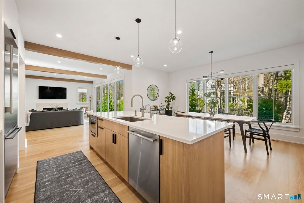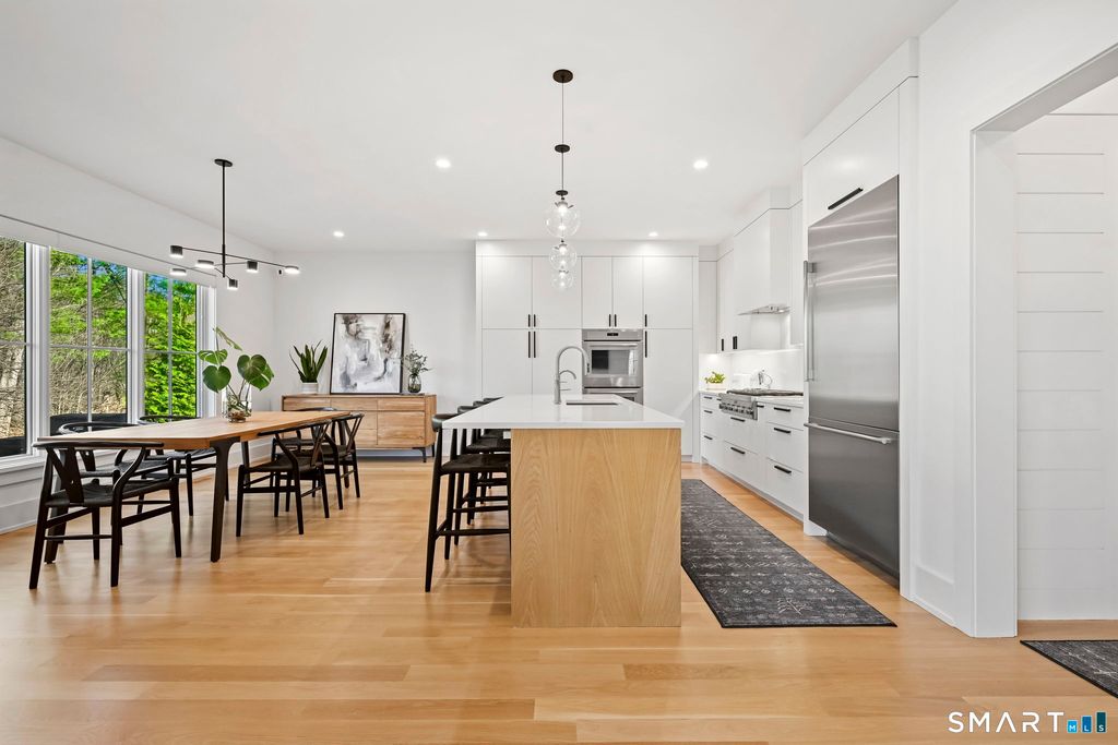 Discover refined, better-than-new construction at 9 White Barns Lane, ideally located in the desirable White Barns community within Norwalk's sought-after Cranbury neighborhood. Built in 2023, this exceptional 4,900+/- Sq. Ft. residence offers 4/5 bedrooms and 4 full/1 half baths of thoughtfully designed living space with incredible flexibility for today's lifestyle. Crafted with quality and attention to detail, the home features custom millwork, high-end finishes, and a seamless open-concept layout designed for both everyday living and entertaining. The main level offers expansive living and dining spaces centered around a modern kitchen, all filled with natural light. Upstairs, the private primary suite and well-proportioned secondary bedrooms provide comfort and functionality. The finished lower level offers ideal space for recreation, fitness, a bedroom, or media room, while the third floor flex space creates an additional opportunity for an office, playroom, or alternative gym location. Outdoor living is equally inviting, with a large bluestone patio overlooking the natural surroundings. A rare opportunity to own a nearly new home in a highly desirable White Barns neighborhood just minutes to shopping, dining, and commuting options in Norwalk, Westport, and Wilton.