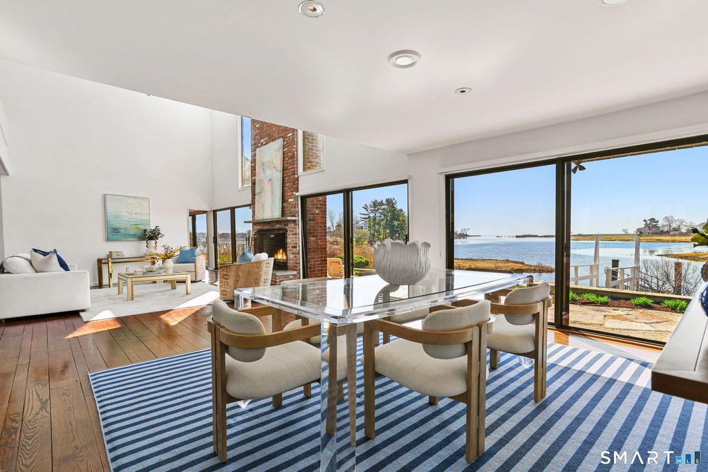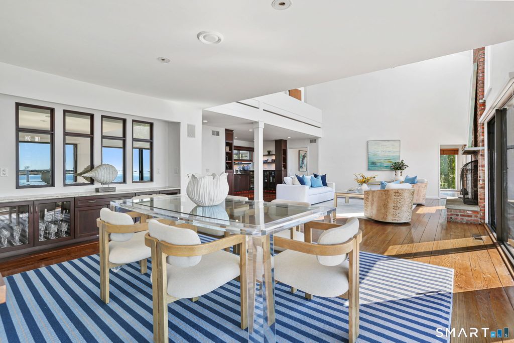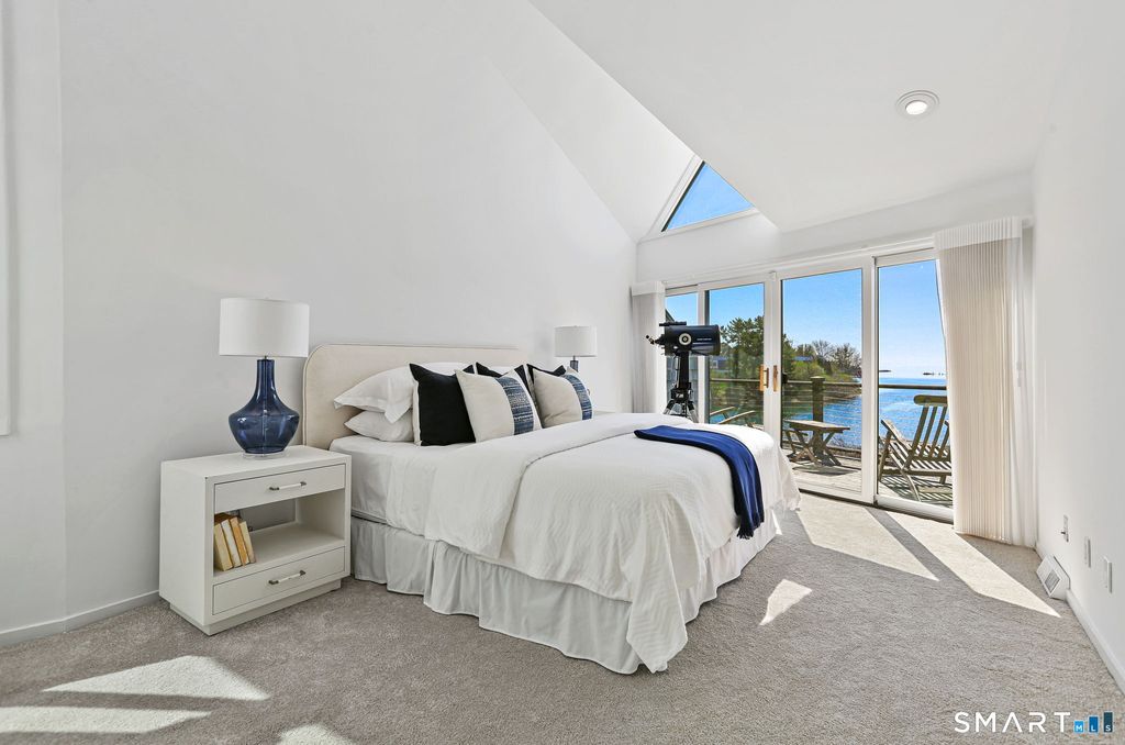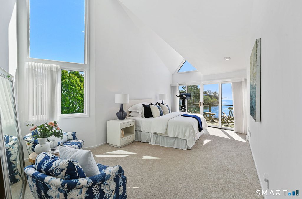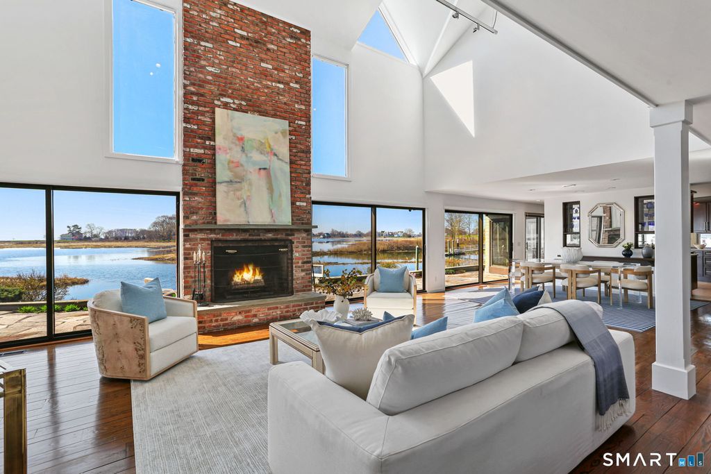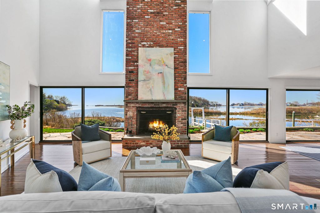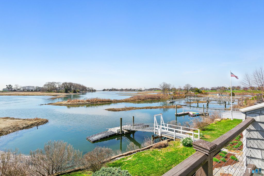 Your Westport oasis awaits on one of the most exceptional direct-waterfront properties in town! Make lasting memories in this private, modern estate with sweeping panoramic views of Long Island Sound, Bermuda Lagoon, Peck Ledge Lighthouse and boating channels! Walk a few steps to your private dock and take your boat DIRECTLY out on the Sound! Celebrate the Fourth of July by watching fireworks from your yard, gunite pool w spa or boat! You can also swim, jet-ski, kayak or paddle board from your dock! Ready to head back inside? Rinse off in the outdoor shower, enjoy the sauna or take a steam shower! Enjoy all that living in Saugatuck Shores has to offer. As a Covlee resident, you'll be a member of the private Covlee Beach Association. This neighborhood enclave offers a sandy beach, additional dock slips, playground, picnic area and fire pit. This flowing, spectacular home enjoys a beautiful floor plan with dramatic walls of windows and soaring ceilings, providing unparalleled water views from almost every room. From the Great Room with its dramatic fireplace and vaulted ceiling, to the spacious, custom Kitchen with fireplace, to the cozy Family Room and Study, there are so many spaces to delight in this waterfront haven! On the upper level, all bedrooms have decks overlooking the Sound. The beautiful Primary Suite has a private deck, vaulted ceiling and luxurious spa bathroom. From 21 Covlee you are just minutes to the train and all of Saugatuck and Westport amenities.
