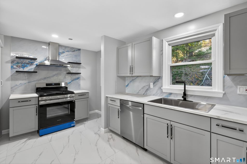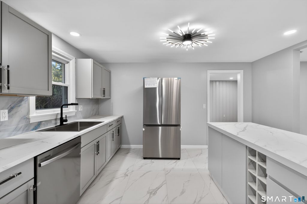 Opportunity knocks at 46 N Cliff St in Ansonia-fully remodeled and move-in ready. This beautifully updated 4-bedroom, 1-bath home blends modern updates with timeless character, offering a comfortable and functional layout. The home features a completely updated kitchen with new cabinetry, center island, gas range, range hood, dishwasher, and refrigerator-perfect for everyday living and entertaining with an open floor plan. The bathroom has been fully renovated, and additional updates include ceiling fans with remote controls in each bedroom and a newer hot water tank. Major improvements also include updated mechanicals and a newer roof and HVAC system, providing added peace of mind. Inside, you'll find bright living spaces with hardwood flooring and a flexible layout that includes a second living room or large bonus room-ideal for a home office, playroom, or additional lounge area. The property also offers added privacy with no immediate rear neighbors, creating a more secluded outdoor setting. The full, unfinished basement presents excellent potential-whether you're looking to create additional living space, a home gym, or a workshop, especially with its convenient connection to the garage. Conveniently located near local amenities and commuter routes, this home offers a great opportunity for buyers seeking a move-in ready property with thoughtful updates and room to grow.