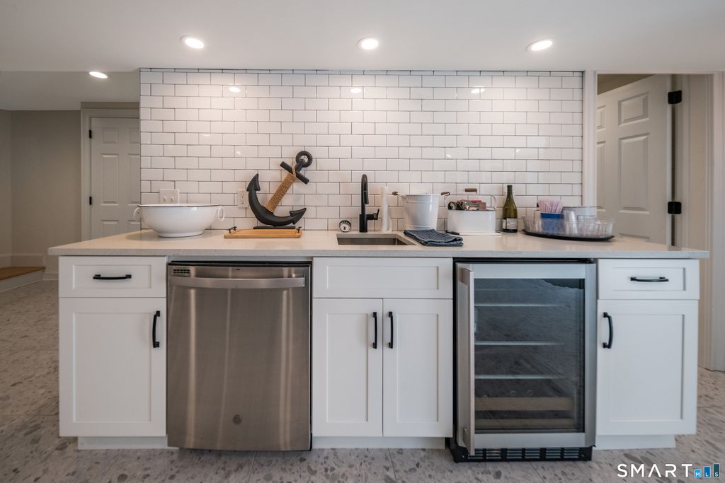 Exceptionally located less than a tenth of a mile from both the town green and beaches - with your own private beach access - this stunning residence sits on 1.57 secluded acres and has been completely re-imagined with uncompromising attention to detail and the finest materials. The home offers 16 thoughtfully designed rooms. Sun filled interiors feature over sized windows and expansive sight lines, anchored by a massive family room and a top of the line chef's kitchen. The lower level is a true walkout guest suite with additional living space plus a separate garage apartment for overnight guests. Outside amenities evoke a private resort: a gunite pool, extensive stone patios, two fully equipped outdoor kitchens, and a charming grassy area framed by mature landscaping for complete privacy. This is a rare coastal estate that blends modern, high end finishes with relaxed, year round seaside living. Practical luxury continues with a three car garage, circular driveway, and generous storage. This is truly a must see.