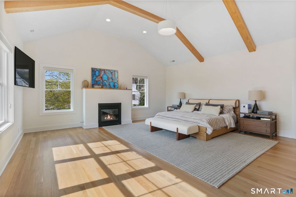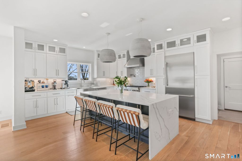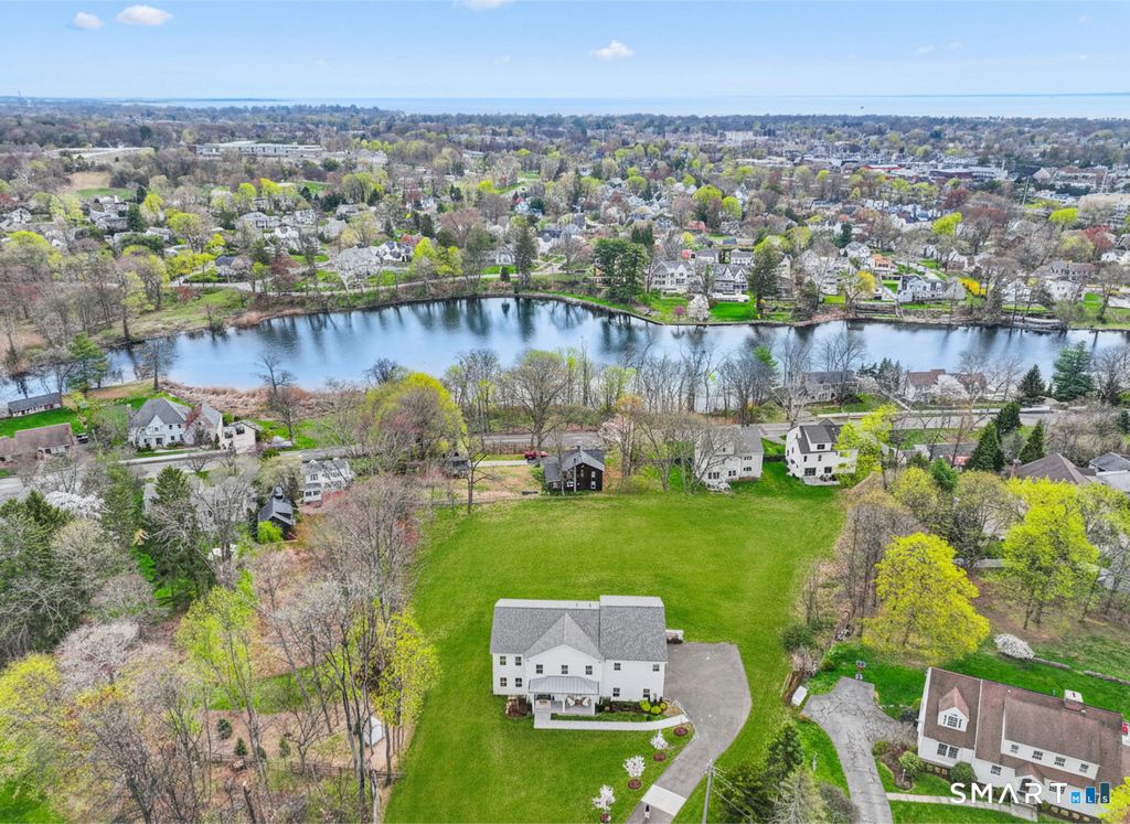Set on a crescent shaped quiet street with serene seasonal water views, this stunning 2023 built home offers the perfect blend of modern elegance and comfortable living. Featuring four spacious bedrooms, 4 1/2 baths, every detail has been thoughtfully designed for both style and functionality. This beautifully designed open floor plan offers an impressive chef-inspired kitchen with white quartz countertops that effortlessly flows into a spacious living room, creating the perfect environment for both every day living and entertainment. A tastefully appointed dining room, with a custom glass wine cellar by Wine Square. The primary bedroom suite feels like a private retreat, defined by its soaring vaulted ceilings and striking exposed wood beams that add warmth and architectural interest. The suite extends seamlessly into a spacious walk-in closet and an adjoining luxury bath that features a soaking tub, oversized glass shower, and dual vanities. The expansive basement provides incredible versatility, complete with a dedicated cinema room for the ultimate movie night experience. Situated on a meticulously landscaped 1 acre property, the home offers both privacy and space to enjoy. An inviting outdoor entertainment space, ideal for gatherings or quiet evenings, with ample room to add a pool. Finished 3 car garage. This is modern living at its finest; elegant, spacious and designed for both relaxation and entertainment. Close to town, beaches and train. Your dream home awaits!