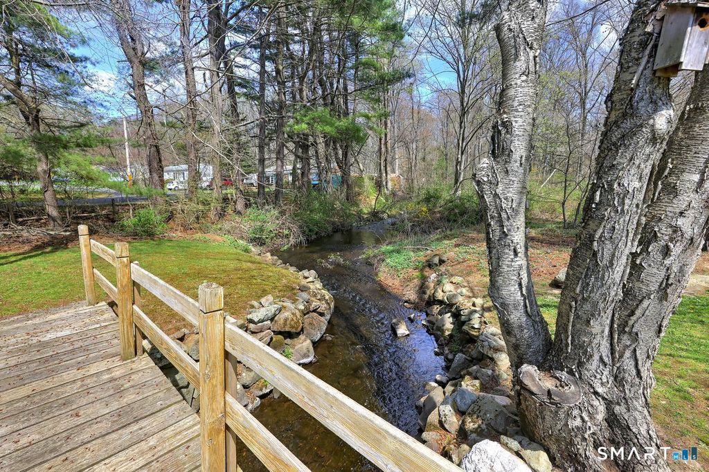 Tucked beside a gently flowing brook, with charming footbridges and mature trees, this storybook setting is what makes this 1.13-acre property truly unforgettable. The home itself is warm and inviting, with hardwood floors, a sun-filled living room, and a classic wood-burning fireplace flanked by built-ins. An arched opening leads to the dining room, creating an easy flow for everyday living and entertaining. The kitchen is BIG and offers ample cabinetry and connects to an unheated breezeway, which leads to a patio overlooking the peaceful, picturesque yard. Three comfortable bedrooms and a full bath with a fun and functional laundry shoot complete the main level. Downstairs, the lower level has been refreshed with new paint and luxury vinyl flooring, offering a clean, versatile space for relaxing or entertaining. A full bath with laundry, a workshop area, and additional nook and cranny storage spaces add to the home's charm and practicality. While the kitchen and baths offer an opportunity for updates, the home is absolutely adorable and has been well maintained, with improvements including new windows (2021), a new roof (2025), connection to city water 2024, and a new ejector pump for the lower-level bath (2025). An additional parcel is included, bringing the total to 1.13 acres (minimal added taxes $46.56 for the year). A rare opportunity to own a peaceful, picturesque property with character, charm, and room to make it your own.