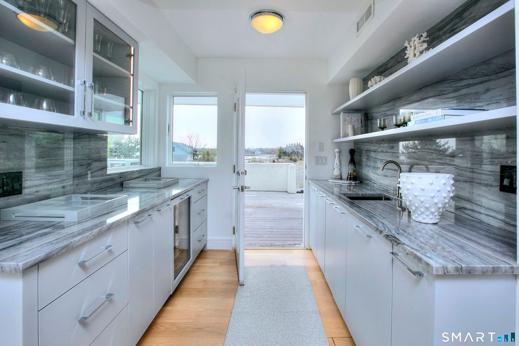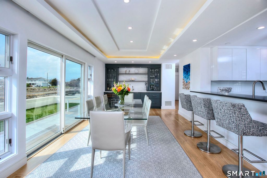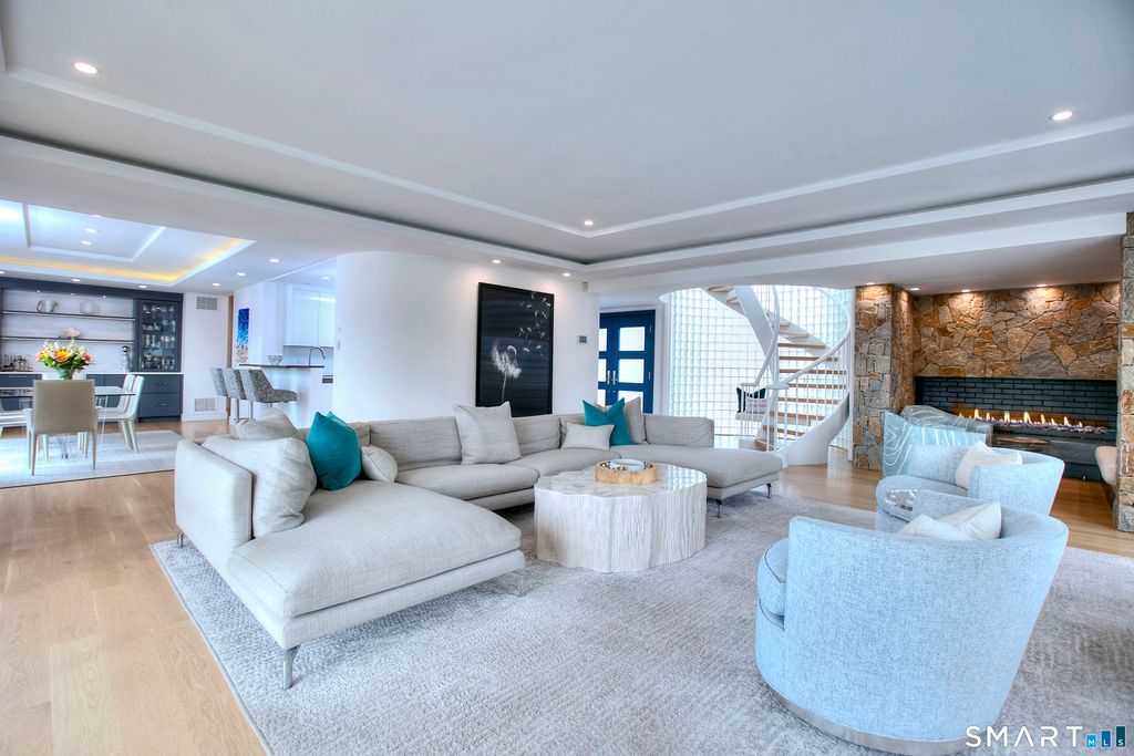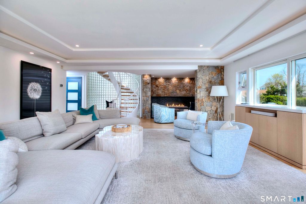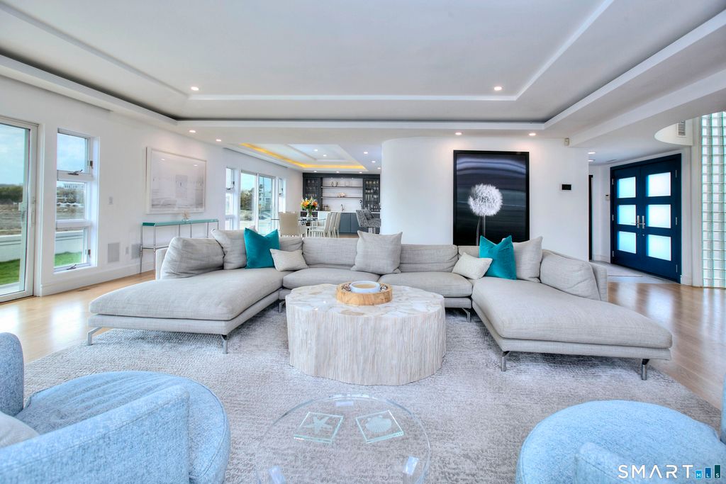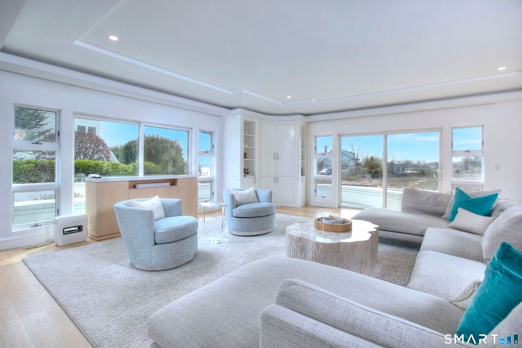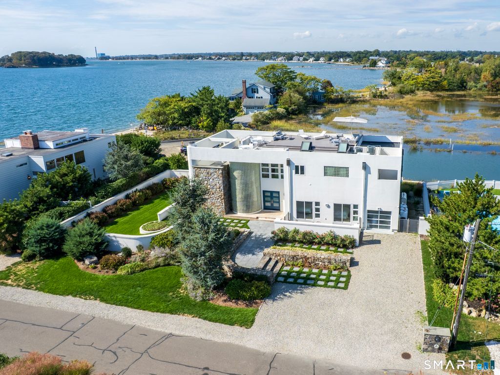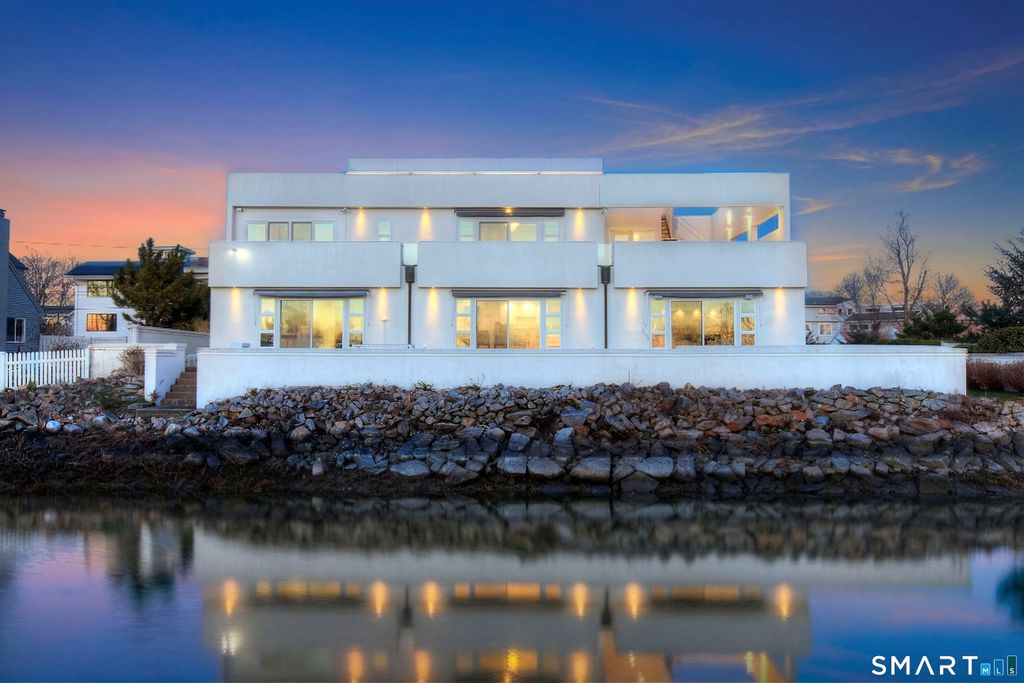 A rare convergence of water, light and privacy, this extraordinary waterfront home offers a lifestyle few ever experience.Perfectly positioned between the open expanse of the Long Island Sound and the quiet rhythm of a private canal, the home is set on a private island just one hour from New York City, yet feels worlds away. Sweeping, unobstructed views stretch endlessly in every direction, with sunsets that transform the sky into a daily work of art. Defined by its clean, modern lines and expansive walls of glass, the home is designed to fully embrace its surroundings.Three spacious decks extend the living experience outdoors, each offering a distinct vantage point from morning light over the water to the stillness of evening reflections along the canal. Inside, newly installed wide-board white oak floors bring warmth and understated sophistication to a home that is entirely move-in ready. Every space is oriented toward water, creating a seamless connection between interior living and the natural beauty beyond. With direct water frontage, a private beach and an ever-changing coastal backdrop, this is more than a home, it is a singular waterfront retreat defined by light, scale and the quiet luxury of complete privacy.