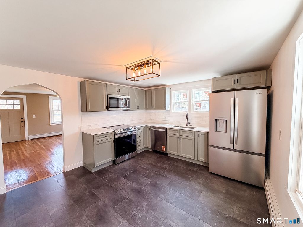 Fully remodeled and rich with character, this 4-bedroom and 1 bath Cape blends classic charm with modern updates. From the moment you enter, you'll appreciate the restored hardwood floors throughout the living room and all bedrooms, along with timeless details like arched openings and a cozy wood-burning fireplace. The updated kitchen features green cabinetry, quartz countertops, a subway tile backsplash, under-mount sink, and brand-new stainless steel appliances. New Durable LVP flooring extends from the kitchen into a spacious mudroom that connects the garage for everyday convenience-and is set up for first-floor laundry. The home offers four nicely sized bedrooms, with two on the main level and two upstairs, providing flexible living options. A fully remodeled main-level bathroom is conveniently located near the bedrooms and features stylish tile flooring, a green vanity with marble top, gold finishes, and a sliding barn door. Natural light fills the home, creating a warm and inviting feel throughout. Additional updates include many newer windows, a new oil tank, new exterior doors, freshly painted exterior and a new garage door. The garage also offers a lofted space for added storage or creative use.Owned solar panels help keep electric costs low. Great basement space ! A move-in ready home that offers character, efficiency, and modern comfort, conveniently located with easy access to Route 6 and I-395.
