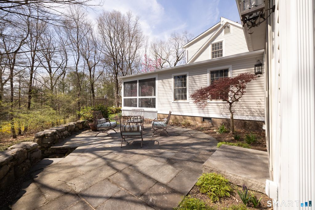 Welcome to your own private retreat at 122 Crest Road-where timeless charm meets thoughtful modern updates. This beautifully maintained 3-bedroom, 2.5-bath Cape Cod-style home is just moments from town, the library, green, and local dining. Designed with both everyday living and entertaining in mind, the home features a custom sunken great room with a dramatic wall of windows that floods the space with natural light and showcases the surrounding landscape. Sliding doors lead seamlessly to a bluestone patio, creating indoor-outdoor flow. The kitchen has new appliances and opens nicely to the great room, enhancing the home's open feel. For more formal gatherings, enjoy the elegant dining room with French doors leading to a charming screened porch, as well as a separate formal living room featuring a fireplace and custom built-ins. Wide plank hardwood flooring adds warmth and character throughout much of the home. A dedicated study offers a cozy fireplace and built-ins-perfect for a home office or quiet retreat. The main-level primary suite is a very nice convenience. Extensive recent upgrades include a new roof, new Hardie board siding, new gutters, new central air system (including air handler), new boiler, new windows, and a security system. Professionally landscaped grounds, mature trees, stone walls and bluestone create a serene setting, yet remains close to everything. Includes a whole house generator. A full list of improvements is available. 90 miles to NYC.