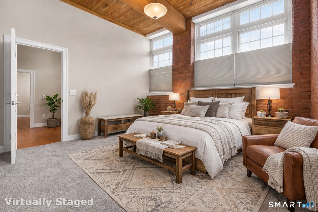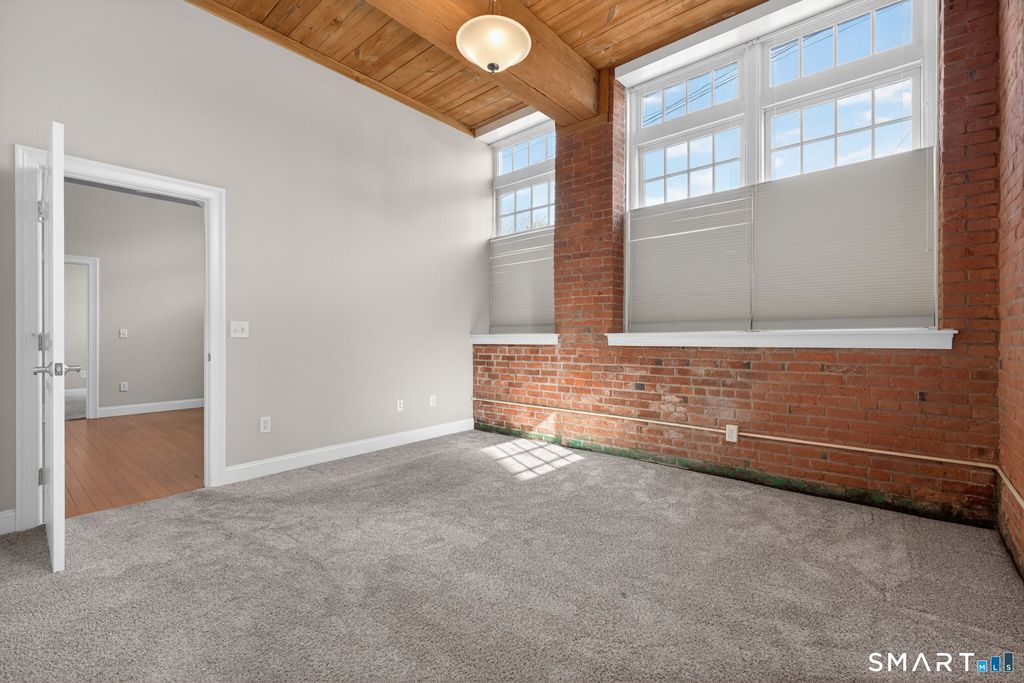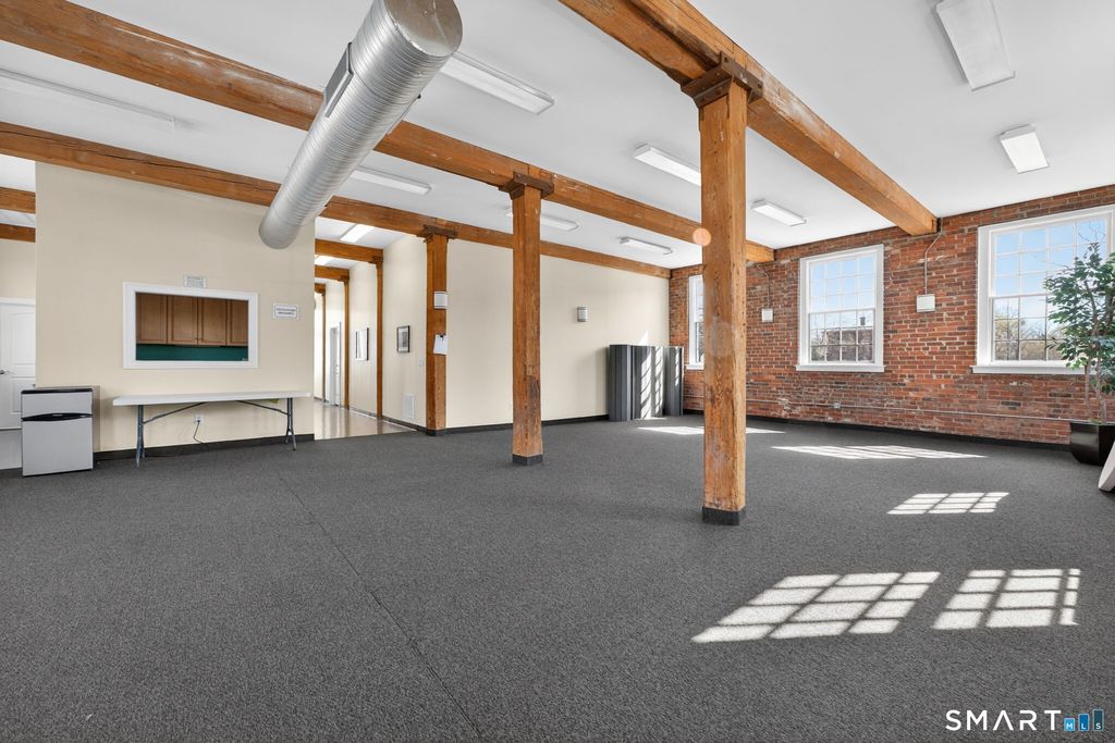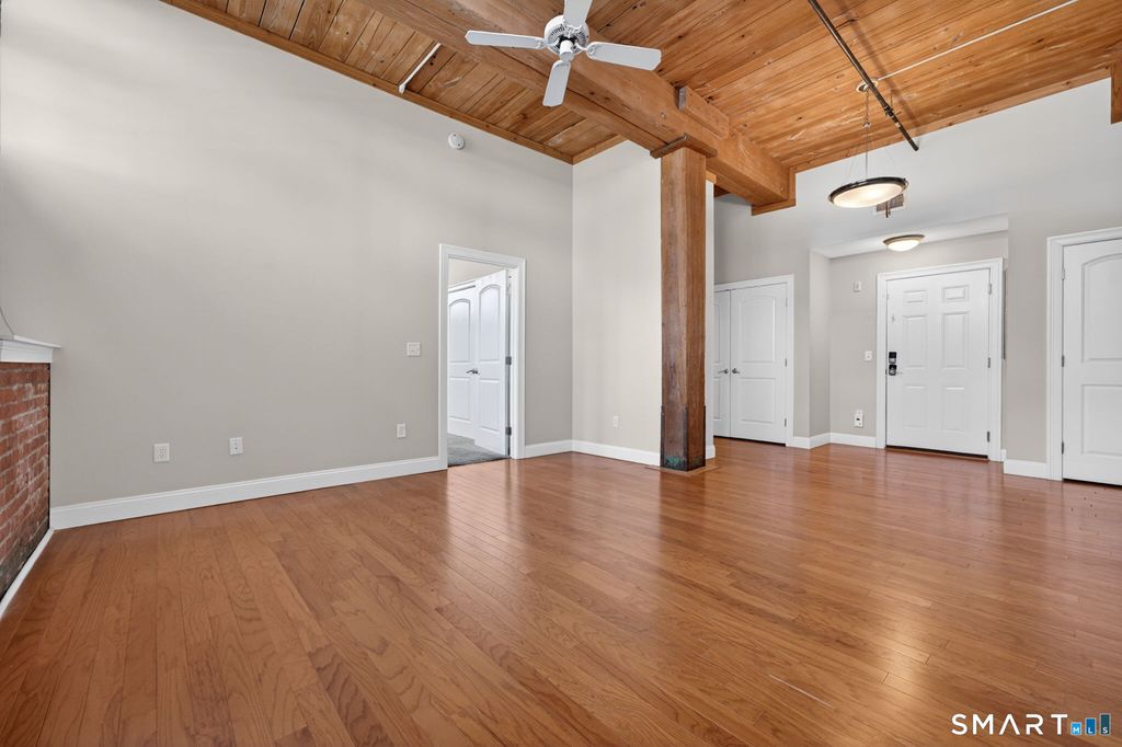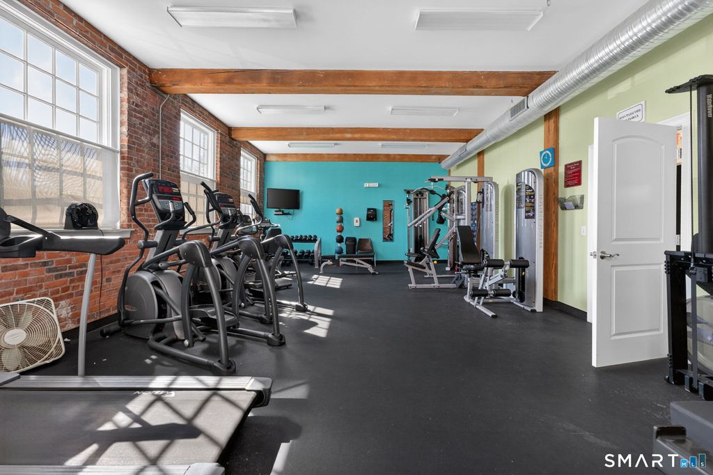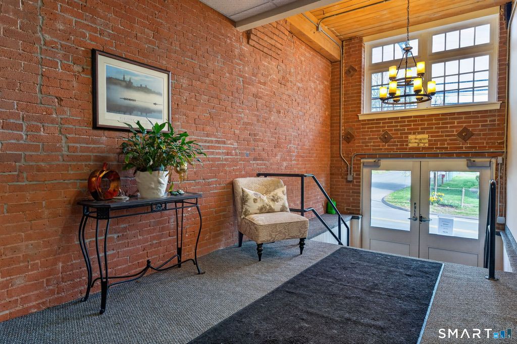 Welcome to a thoughtfully designed single level condo at The Lofts at Sherwood Falls in Kensington, offering a comfortable blend of character and convenience in a peaceful setting. This spacious two bedroom, two bath condo features soaring ceilings, exposed wood beams, and original brick that showcase the building's timeless charm, blending modern comfort with loft style living. Oversized windows invite abundant natural light, enhancing the open and airy feel throughout the living space. The unit also offers generous storage throughout and the convenience of an in-unit washer and dryer, adding to the ease of everyday living. Residents benefit from a low cost HOA that include access to a community room and fitness center, along with the added convenience of an elevator and accessibility features. Enjoy nearby walking trails, scenic waterfall views, and a close by tranquil pond ideal for relaxing, fishing, or picnicking. Ideal for those seeking a low maintenance condo, ranch style living, and a unique loft with character in a desirable Kensington location. Dogs and cats allowed with restrictions. This property won't last long and is a must see.