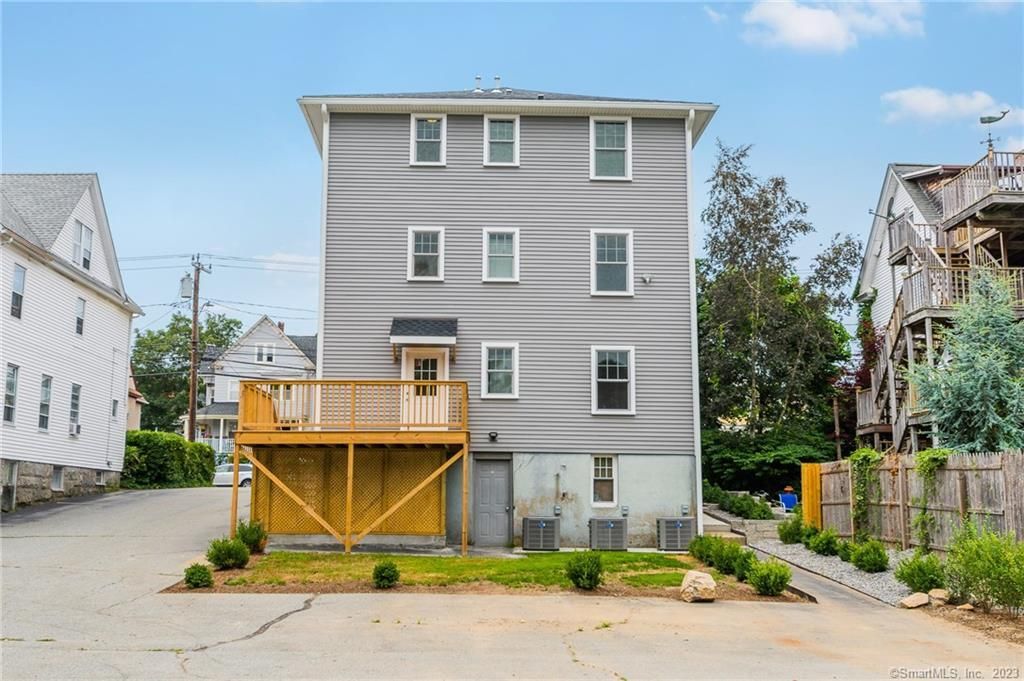 Completely rebuilt multi-family offers one floor living with 2 bedrooms and 2 full baths. Quality finishes throughout include crown moldings, central AC, hardwood floors. Unit comes with new stainless kitchen appliances with washer and dryer in the unit. Granite counter tops and breakfast bar, recessed lighting and custom window blinds make this unit move in ready. Private deck facing street. Plenty of off street parking and just a short walk to Yale NH Hospital L&M campus and General Dynamics-Electric Boat NL. Credit check, references and security deposit required.