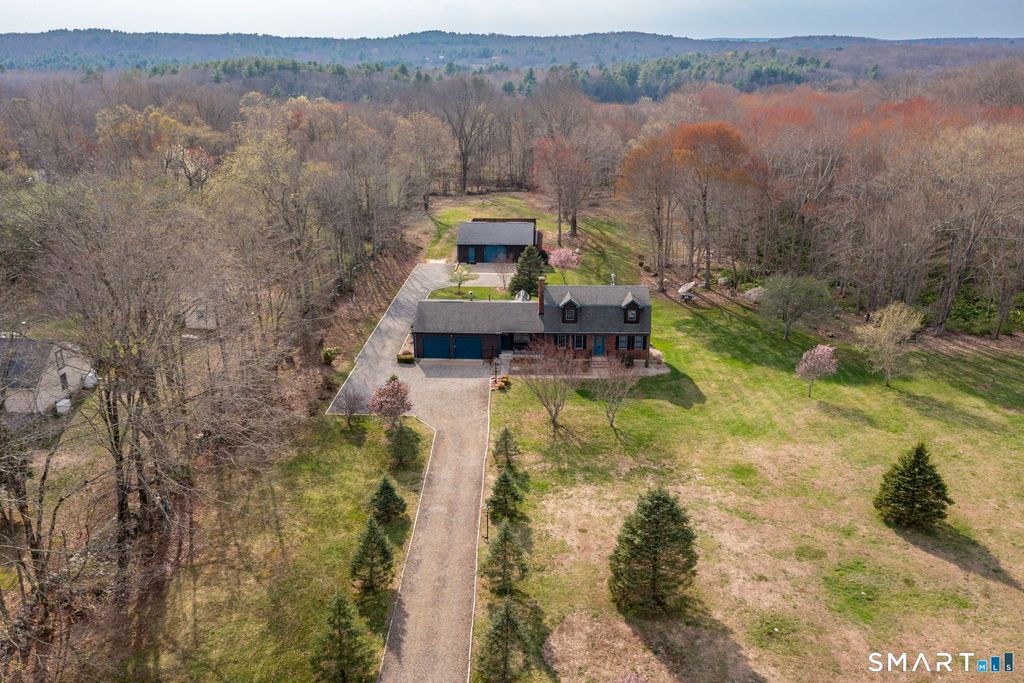 Welcome to 164 Old Colchester Road, a well-maintained and inviting property set on over 7 acres of beautiful land in Hebron. This 3-bedroom home offers a warm and functional layout with hardwood floors throughout most of the home and two fireplaces that add charm and comfort to the main living spaces. A nice large eat-in kitchen provides plenty of space for cooking and gathering, while French doors lead out to the back deck, creating an easy flow for indoor and outdoor living. A small upper sitting deck off the primary bedroom offers a private retreat overlooking the property. The main living areas are ideal for everyday living and entertaining, and a dedicated office provides the perfect work-from-home space. The finished lower level, complete with a wood stove, offers additional flexible living space ideal for a family room, recreation area, or guest space. Outside, enjoy the peaceful setting from the pergola or explore the expansive grounds. A standout feature of this property is the huge, versatile outbuilding, complete with a large fenced-in concrete slab off the back-perfect for equipment storage, outdoor workspace, hobby use, or entertaining. Completing the home is a 2-car garage and a setting that provides both privacy and convenience to local amenities.