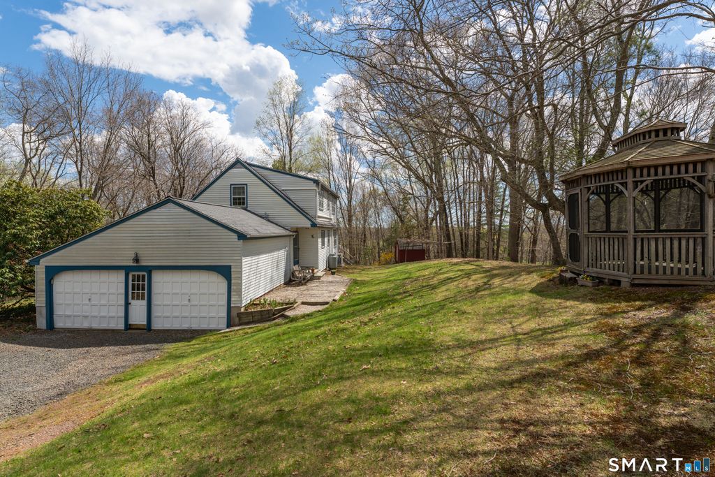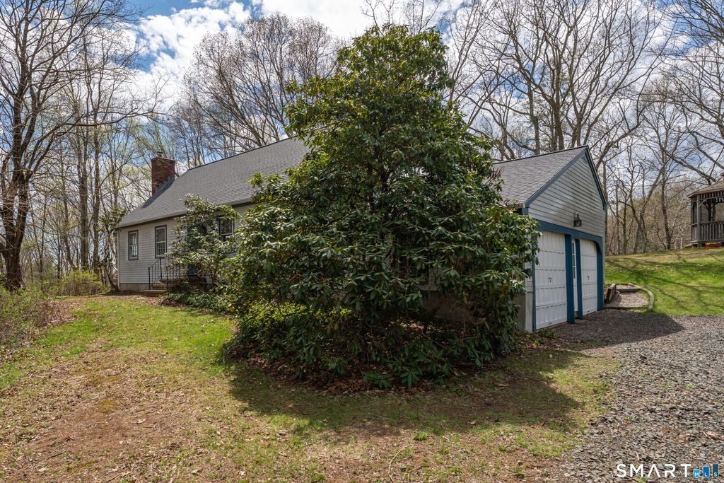 "Vermont in Guilford": Extraordinary hilltop privacy surrounded by woods and fields in North Guilford. This well-maintained 3-bedroom, 1.5-bath home with attached 2-car garage is ideally sited atop a hill in a desirable setting. Recent updates include mini-splits, a new roof, fresh interior paint, and gleaming hardwood floors. The main level features an open living area with wood stove, offering a flexible and comfortable layout. An eat-in kitchen, home office, and half bath complete this level. Upstairs are three bedrooms and a full bath. Enjoy outdoor living on the rear deck or in the gazebo, overlooking a private, lightly wooded setting. Conveniently located near Lake Quonnipaug, Bluff Head hiking trails, and Guilford's scenic countryside. Just a short commute to New Haven and Middletown-offering easy access to dining, culture, and entertainment. A fantastic opportunity-come see it and fall in love!