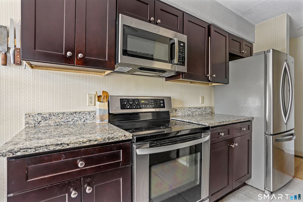 Conveniently located in Hamden with direct access to the Farmington Canal Trail, this ranch condo offers easy living with exceptional access to Yale University, Quinnipiac University, and downtown New Haven. Close to shopping, dining, Yale, Quinnipiac, parks, trails, and the Merritt Parkway. The interior features an updated eat-in kitchen with granite countertops and stainless steel appliances, along with a bright living room offering access to a private balcony. The spacious bedroom includes a walk-in closet. An in-unit washer and dryer add to everyday convenience, along with additional storage space in the basement. Enjoy a lifestyle where daily errands are within reach-walk via the trail to grocery stores, restaurants, CVS, Home Depot, and more. The complex offers low-maintenance living.
